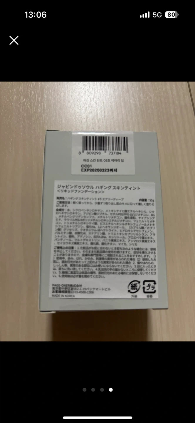 ジャビン ドゥ ソウルのハギング スキンティントです。 【情報】 ブランド:ジャビン ドゥ ソウル 商品名:ハギング スキンティント カラー:05 エアリーディープ SPF50+ PA+++ 【状態】 未使用