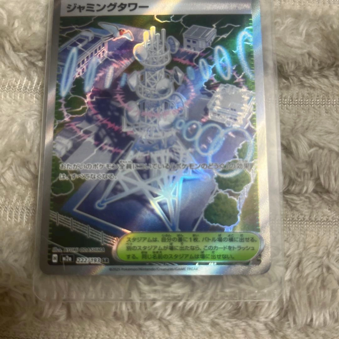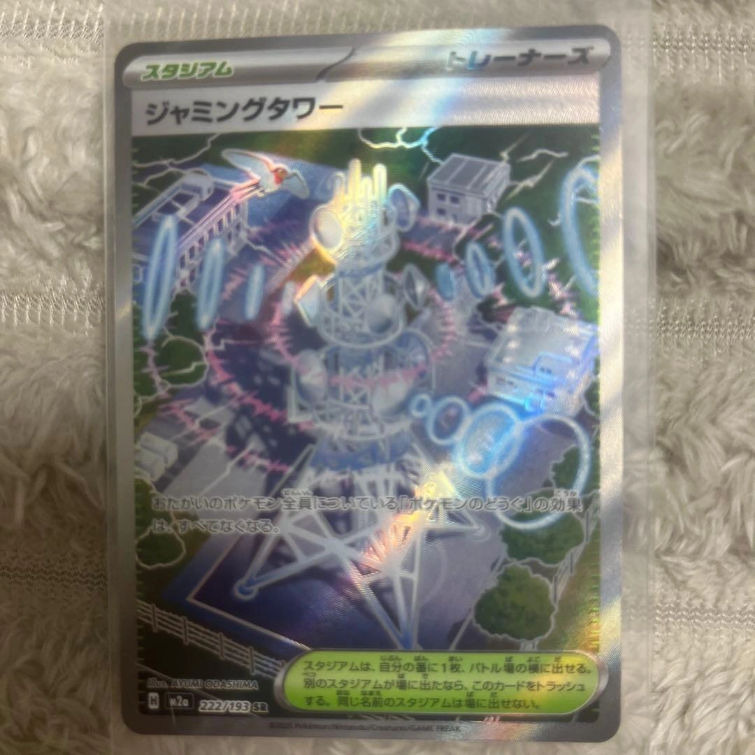 スタジアムカード「ジャミングタワー」です。特別な効果を持つトレーナーカードです。 - カード名: ジャミングタワー - レアリティ: スタジアム - セット番号: 222/199 開封後、すぐにフィルターに保管しました。 商品の状態は写真のとおりです。 #ポケモンカード #ポケカ #ポケカ販売 #ポケカコレクション #ポケカサポート #SAR #SR #トレカ #カードゲーム #PokemonCard ご希望の方はお気軽にご連絡ください。