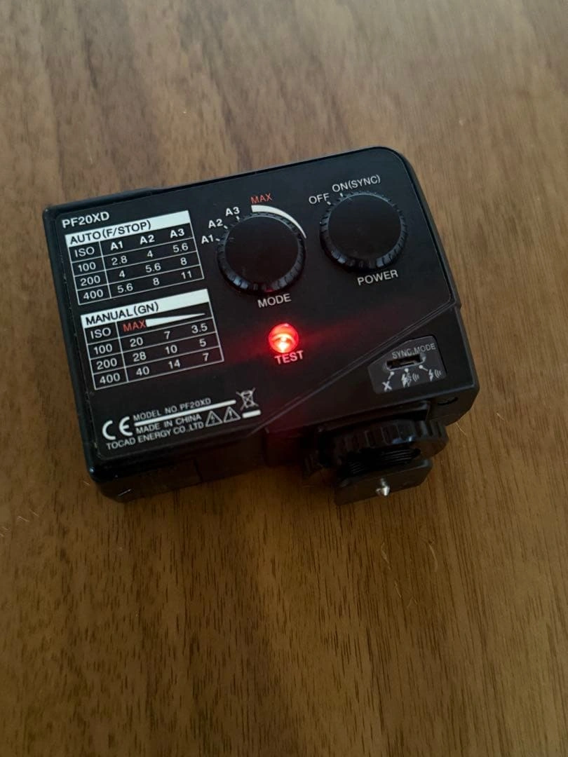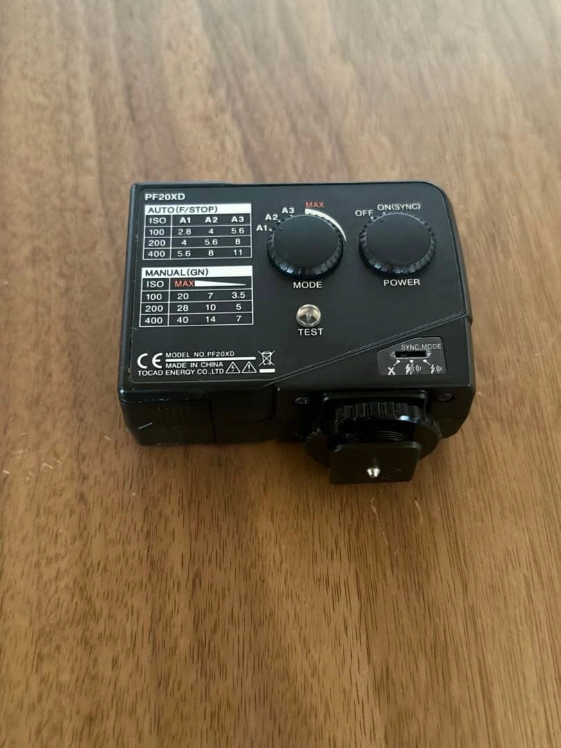 オリンパスOM-1マニュアルフィルムカメラにマウントして使っておりました。 テストボタンは光りますが、テストボタンを押しても発光しないため、ジャンク品として出品します。シャッター押しても発光しません。 電池は抜いてお送りします。 元々の箱は捨ててしまいありません。 ノークレームノーリターンでお願いします。 SUNPAK PF20XD、オート/マニュアルモード対応のストロボ。 - ブランド: SUNPAK - モデル: PF20XD - 機能: オート/マニュアルモード - 設定: 150, 200, 240, 400 GN - テスト機能: テストボタンあり ご希望の方はお気軽にご連絡ください。