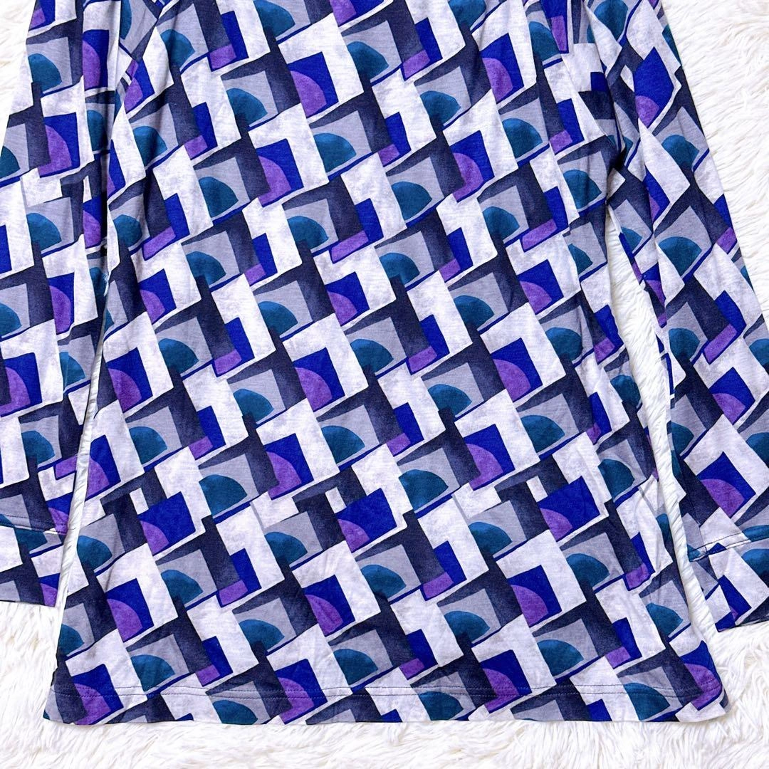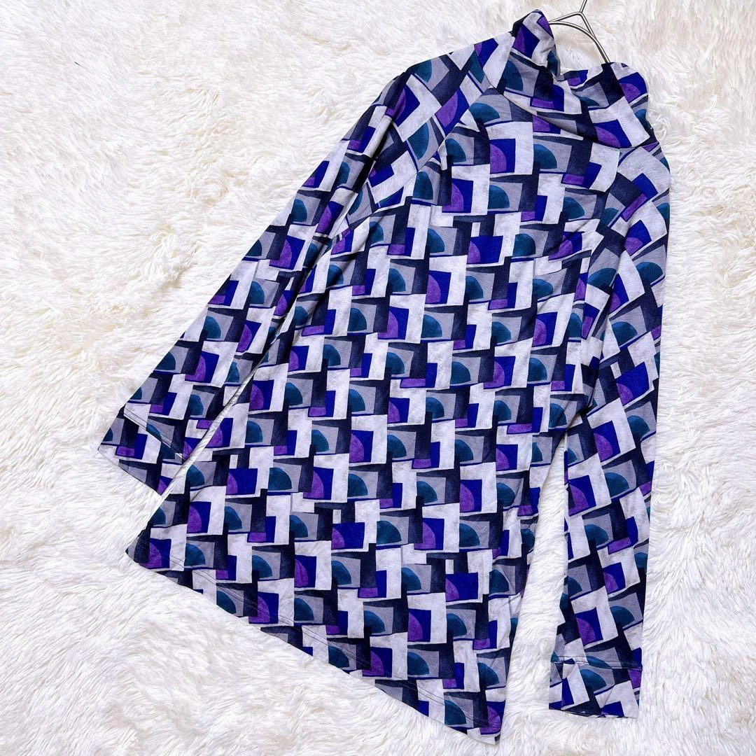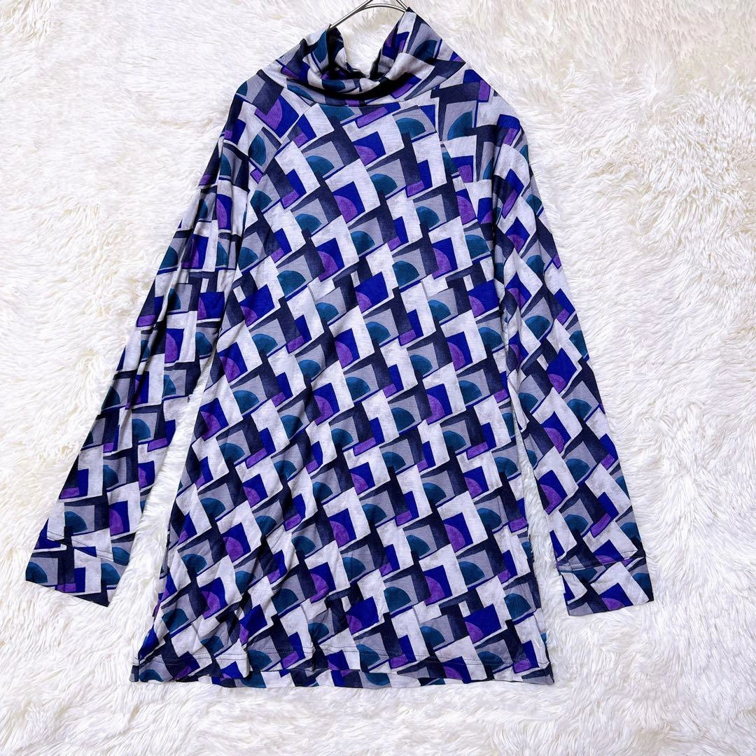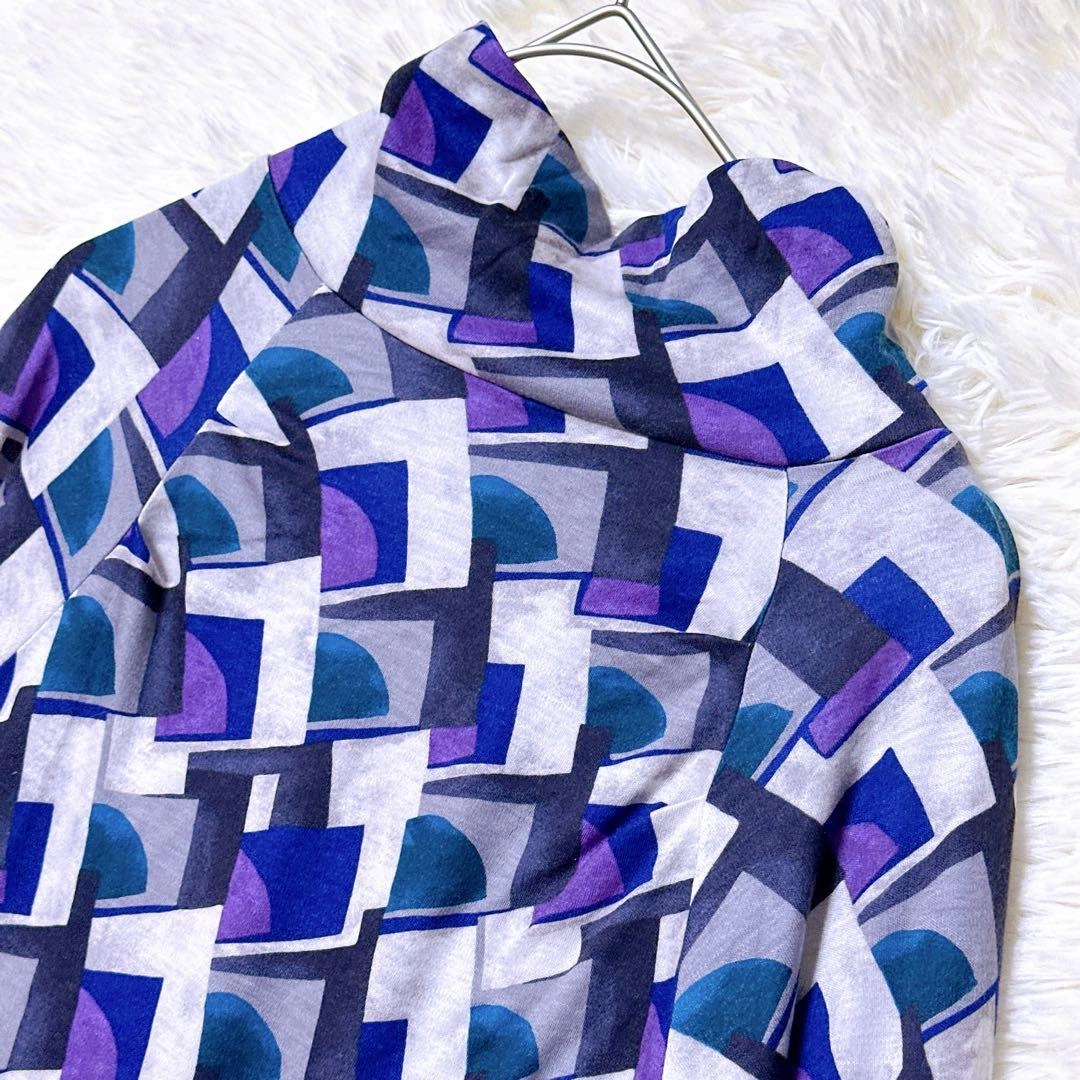 あたたかさ紫と青の幾何学模様のタートルネック長袖チュニックです。 写真にてご確認ください。 サイズ:36(Sサイズ相当) 着丈:60cm 身幅:43cm 裄丈:72cm 素人寸法のため、若干の誤差はご了承ください。 ご質問は購入前にお願いします。 万一不備がありましたら、受け取り評価前にご連絡ください。