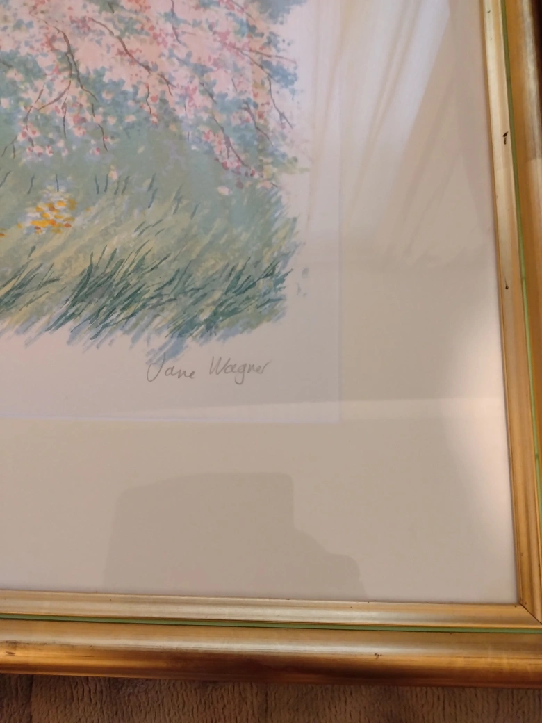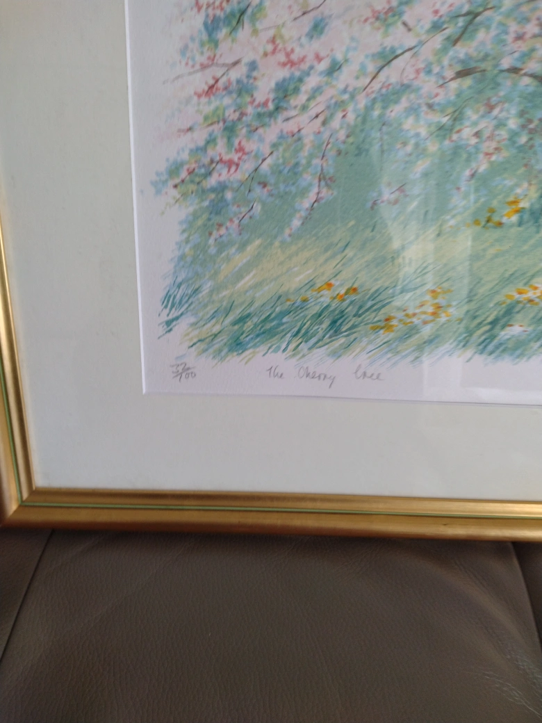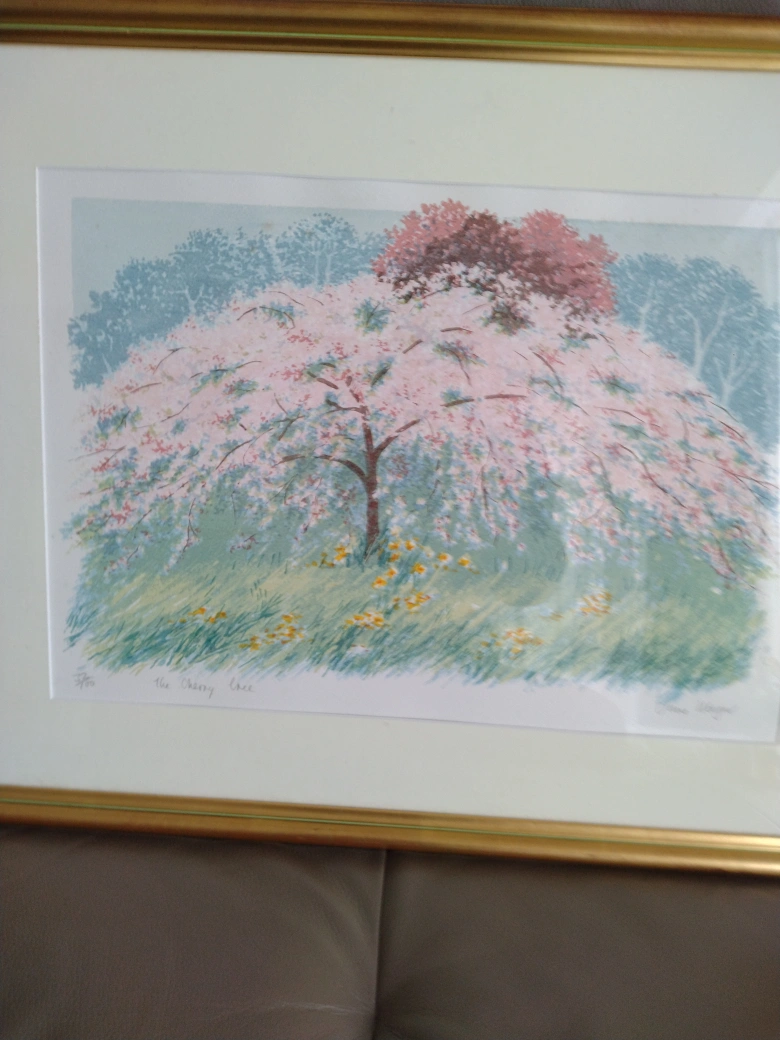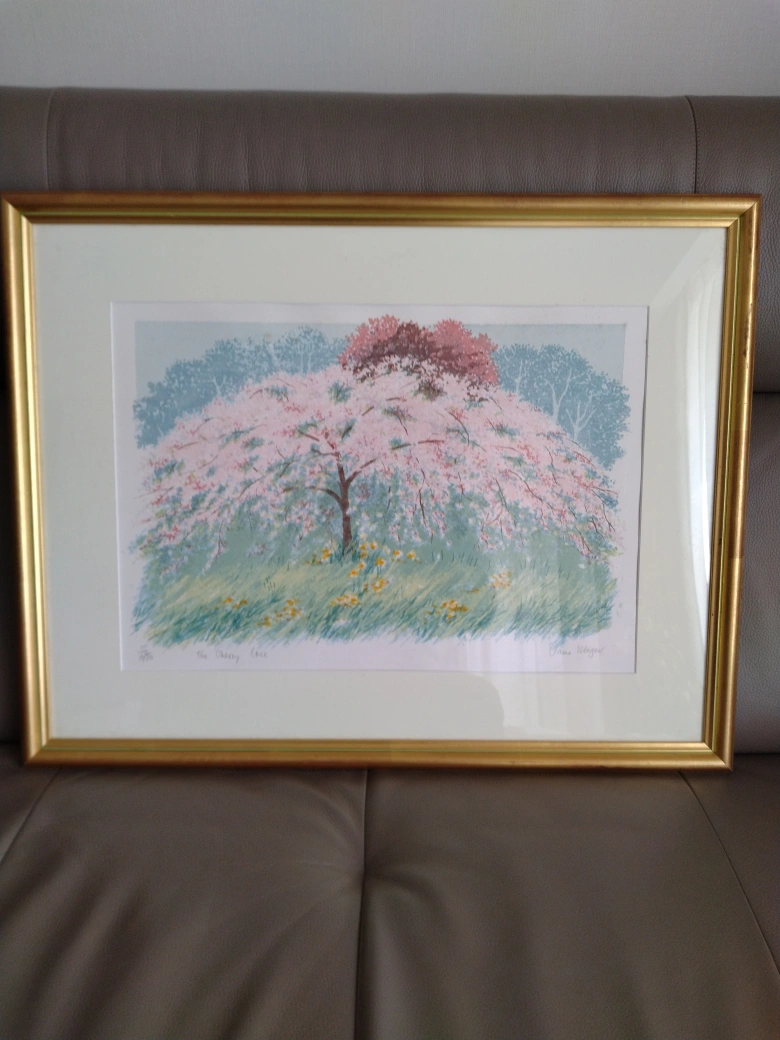 ジューンワグナーの版画「桜の木」です。英国の風景画を得意としている画家です。 ●額寸 タテ 55cm X ヨコ 70cm X 巾 2.5cm
