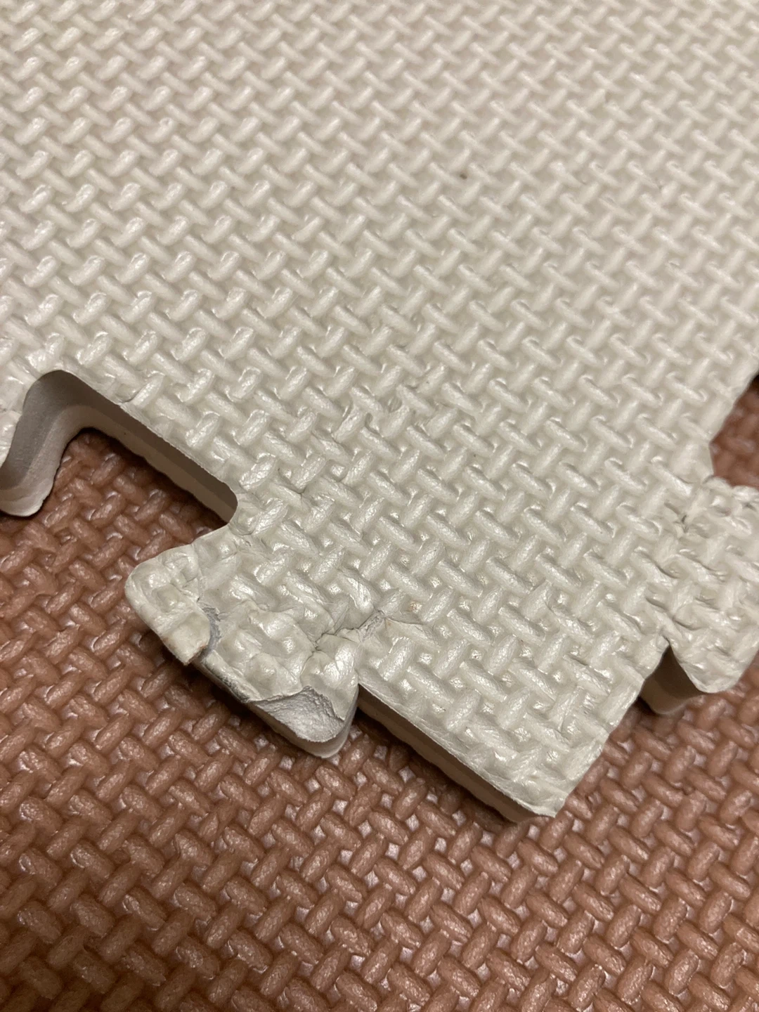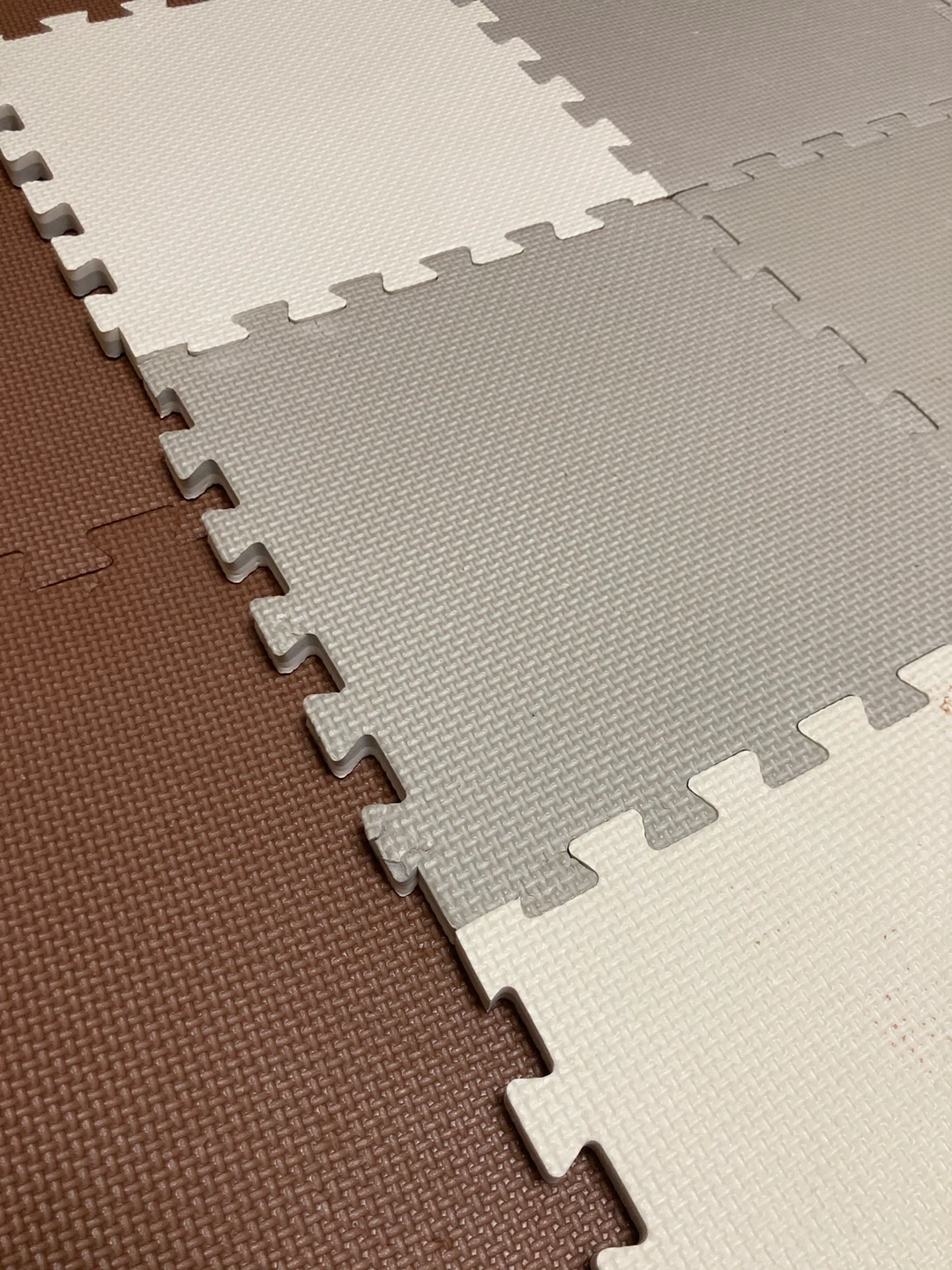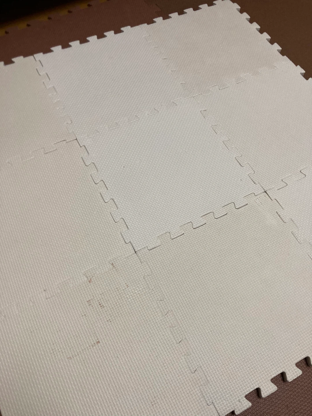 ジョイントマット9枚セットです。 凹凸の無い部分のサイズ26.5センチ×26.5センチ ・色:白、グレーのリバーシブル ・使用感あり ・一部に汚れ、傷あり 子どもがガムテープを貼ってしまったものが2枚ほどあり、こすっても取れませんでした。あまり綺麗ではありませんが、ベタつきは無く、まだまだご使用いただけます。 ジョイント部分が潰れているものもあります。 お譲りできないようであれば、こちらで処分する予定です。