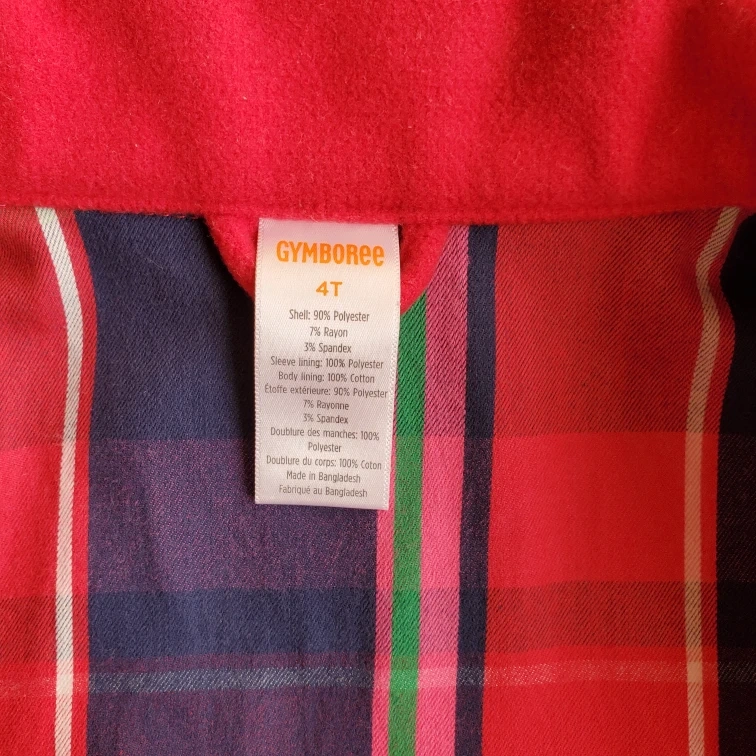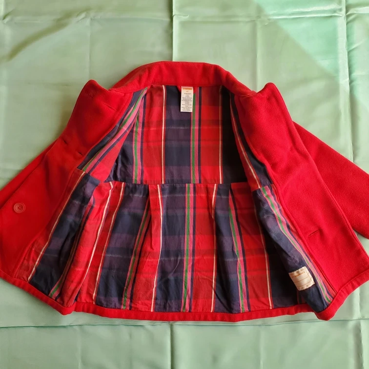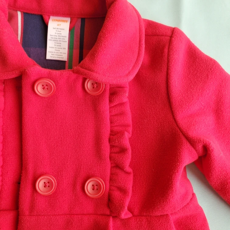 ジンボリーのコートです。 ・ブランド:ジンボリー ・サイズ:4T ・色:赤 ・素材:ポリエステル、レーヨン、スパンデックス ・裏地:コットン ・使用感少なめ この時期とっても可愛いコートです。 子供の使用品になります。 ご理解の上、ノークレーム・ノーリターンでお願いします。