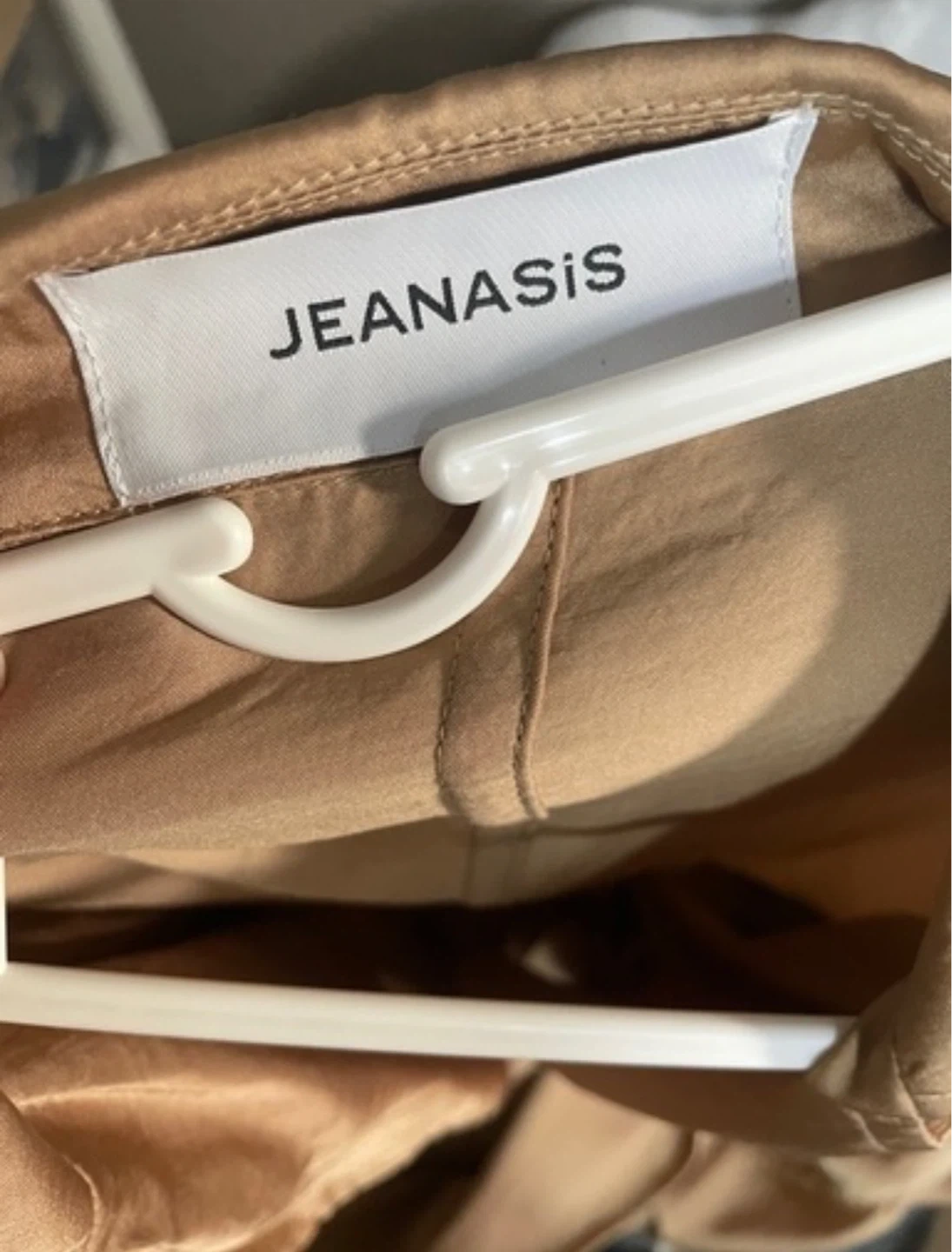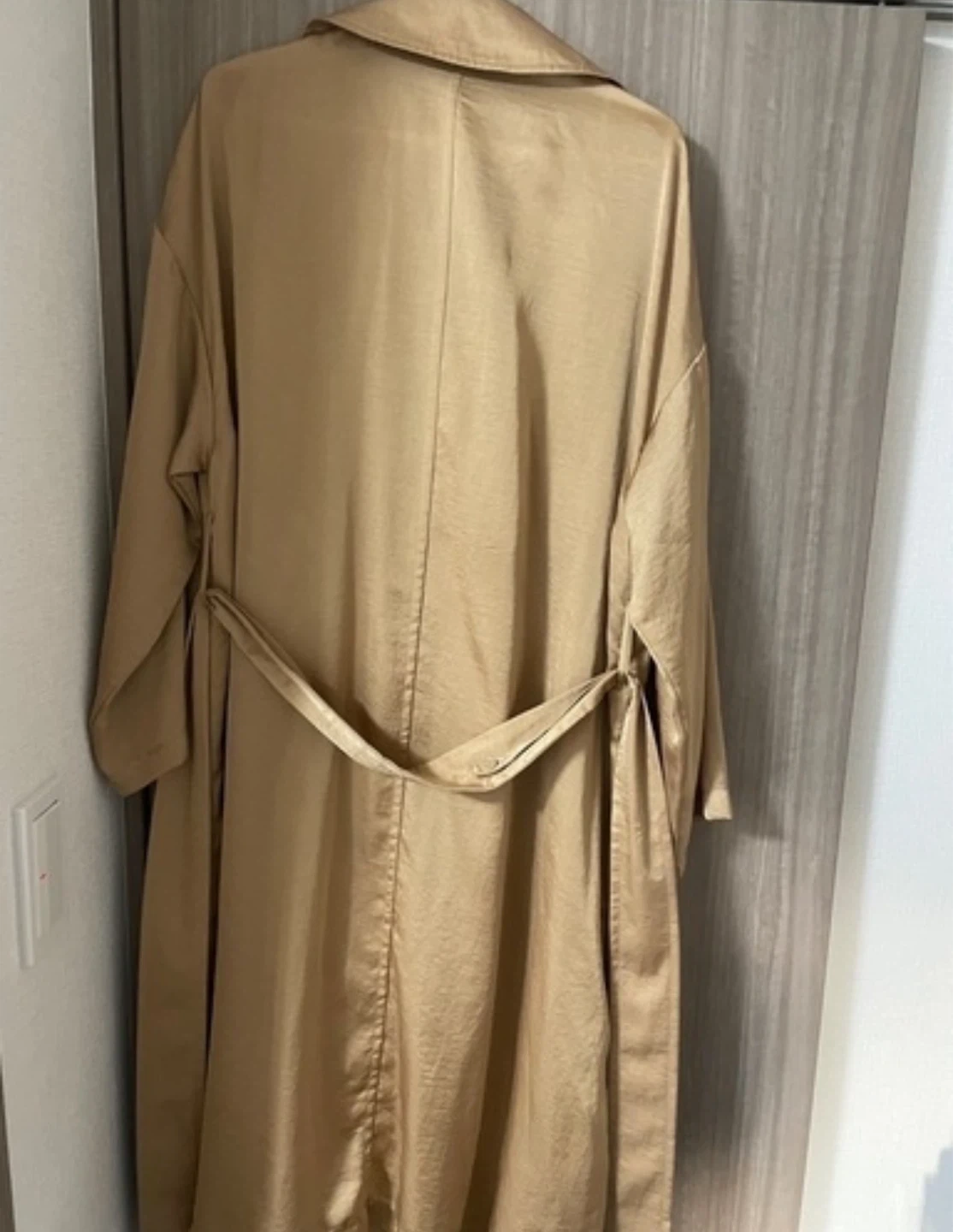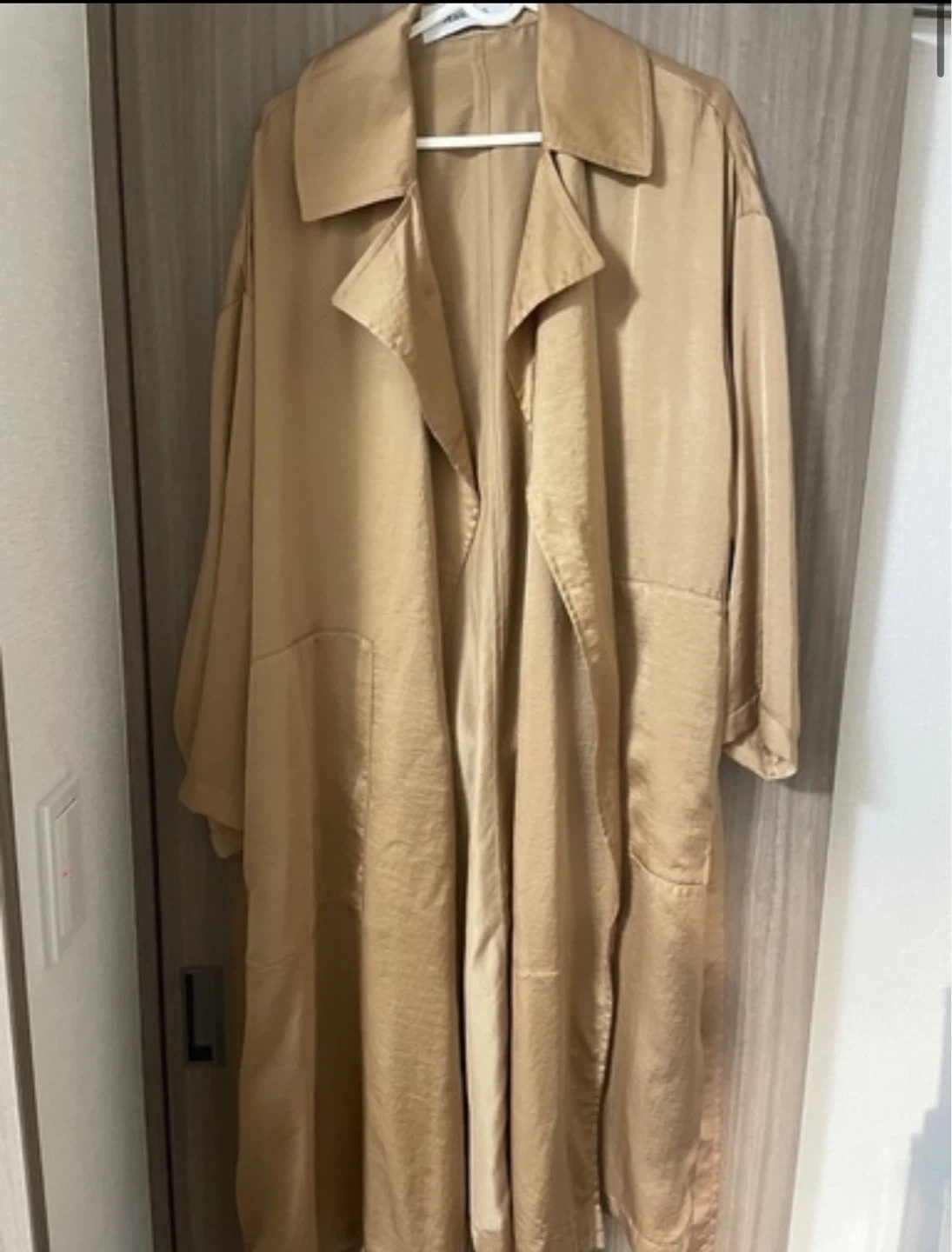 ジーナシスのコートです。 【情報】 ブランド:ジーナシス サイズ:F 品番:JS070947AD 素材:ポリエステル100% 薄めコード サテンのようなサラサラした生地感です。 自分に合わなかったので売ります。 洗濯してずっと使ってないため、断捨離します。