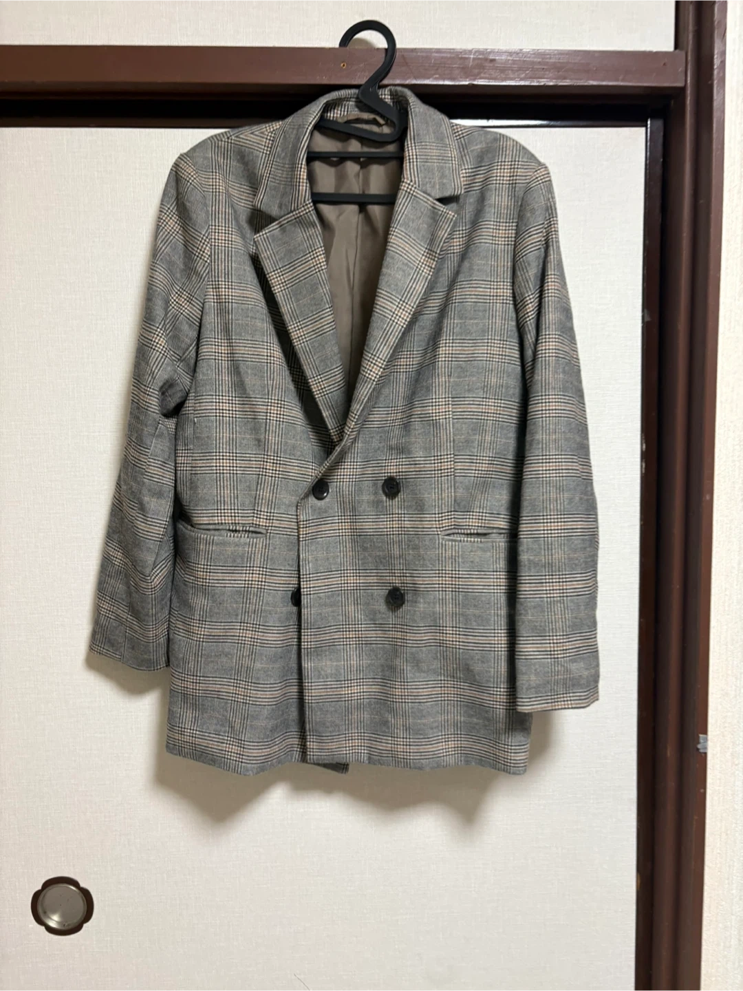 ジーユーのチェック柄ジャケットです。 ・サイズ:L ・色:グレー、チェック柄 ・素材:画像参照 中古品であることをご了承ください。 返品返金は,ないのでご了承ください。 よろしくお願いします。