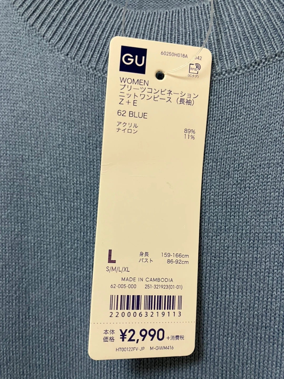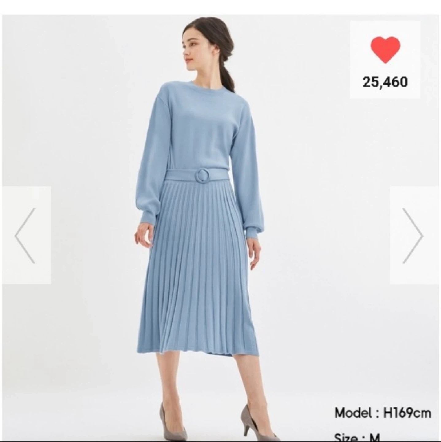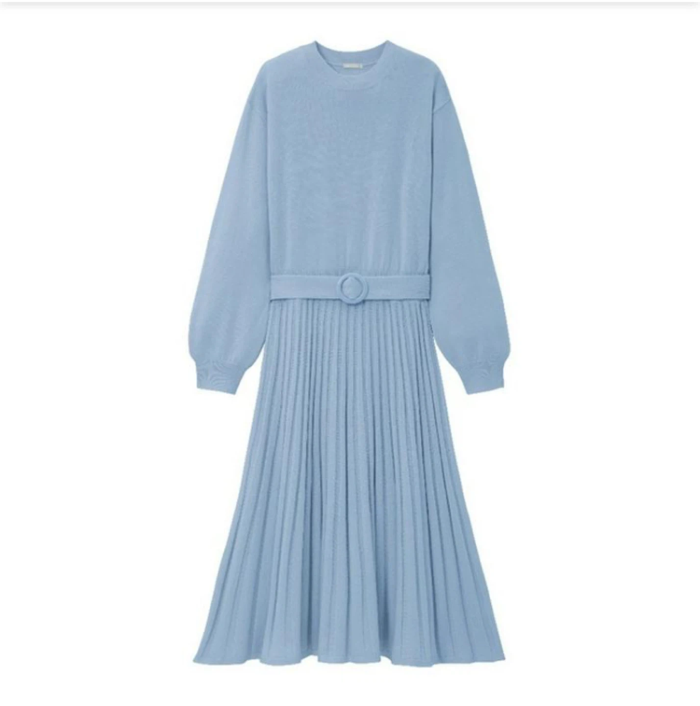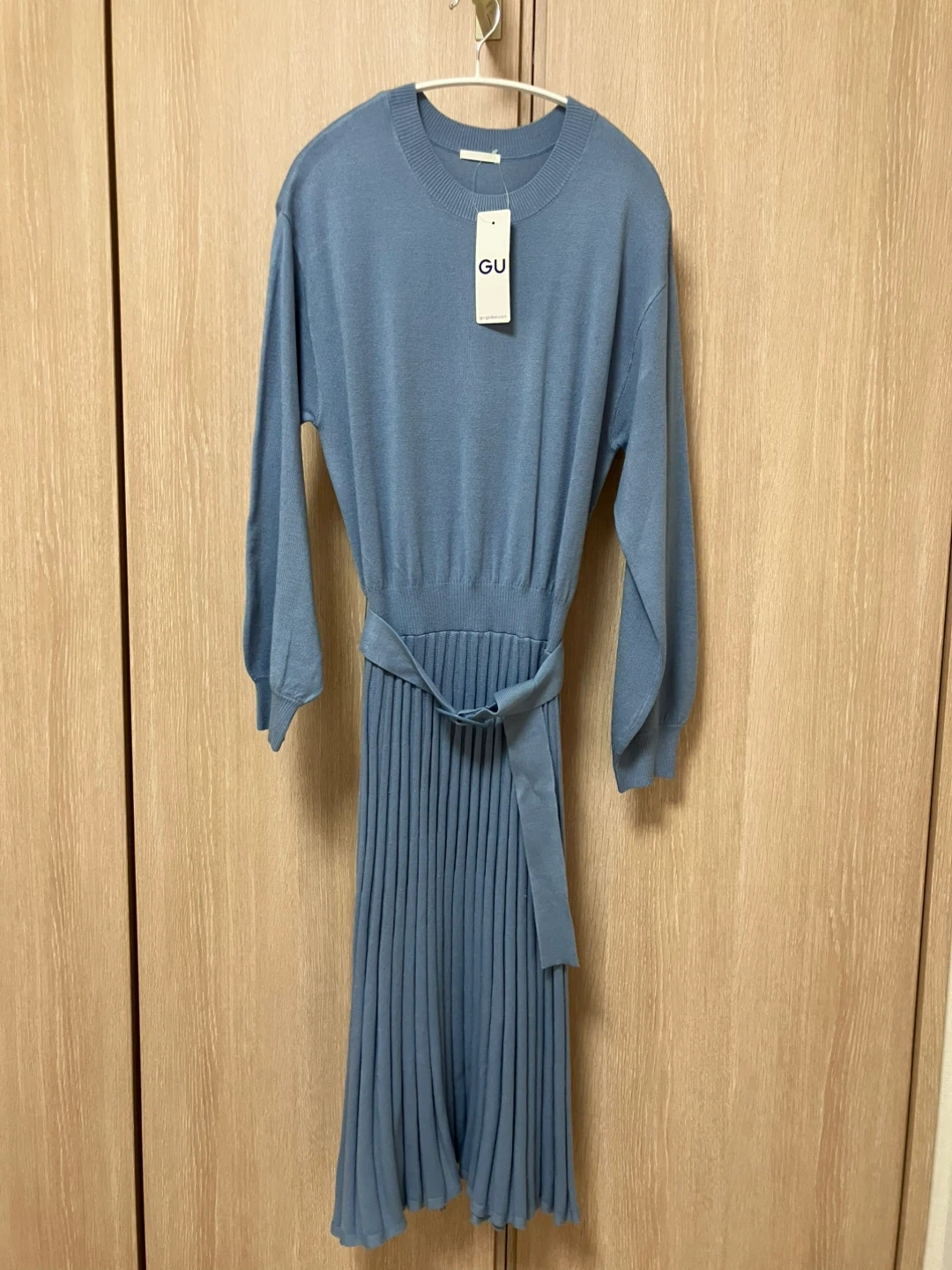 ★ジーユーのプリーツスカートニットワンピースです。 ★未使用品、タグ付き クローゼット保管しておりました。 ★上品で清楚なブルーのひざ丈ニットワンピースは、食事会やデートにオススメです❣️ 【情報】 ブランド:ジーユー 商品名:プリーツコンビネーションニットワンピース(長袖)Z + E 色:62 BLUE 素材:アクリル89%、ナイロン11% サイズ:L