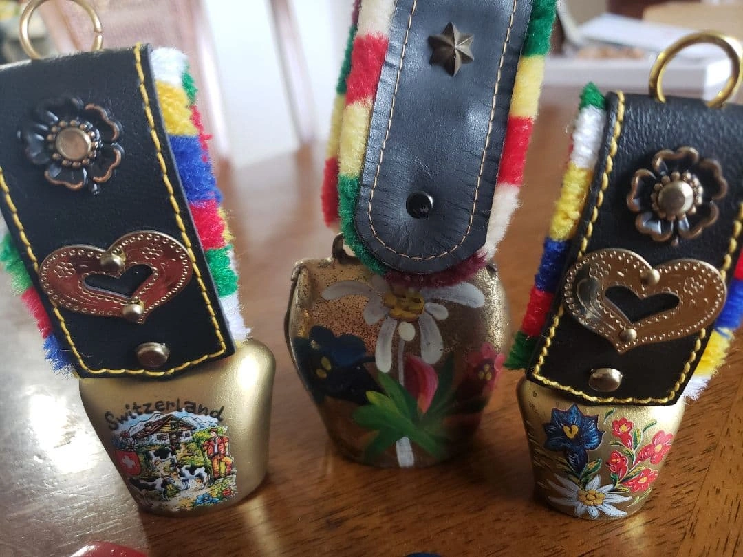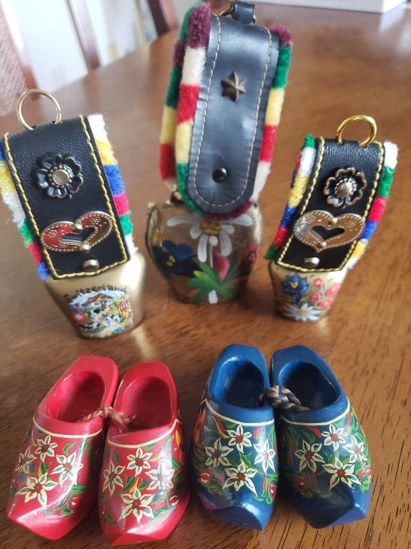 スイスで購入した小型カウベルと花柄の靴5点セット