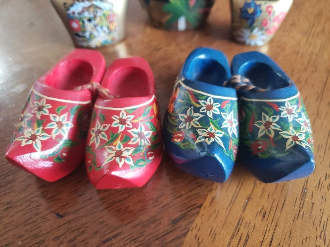 スイスで買ってきた、風景が描かれた小型カウベルと花柄の靴の5点セットです。 - デザイン: スイスの風景が描かれたカウベル - 色: 赤と青の装飾的な木製の靴 - 装飾: 花柄のペイントが施された靴 - 素材: 金属と木製 - サイズ: 小型の装飾品 - 用途: インテリアやコレクション用 ご覧いただきありがとうございます。 ご希望の方はお気軽にご連絡ください。