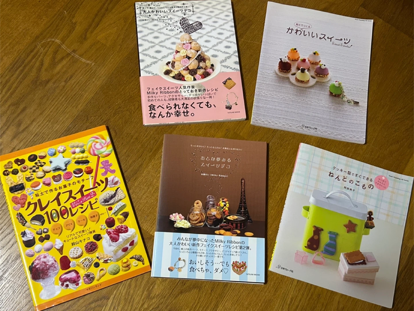 スイーツデコ、ねんどに関するレシピ本5冊セットです ・「大人かわいいスイーツデコ」 ・「かわいいスイーツ」 ・「クレイ スイーツ 100レシピ Part2」 ・「おとな夢みるスイーツデコ」 ・「クッキー型ですぐできるねんどのこもの」 中古品であることご了承ください