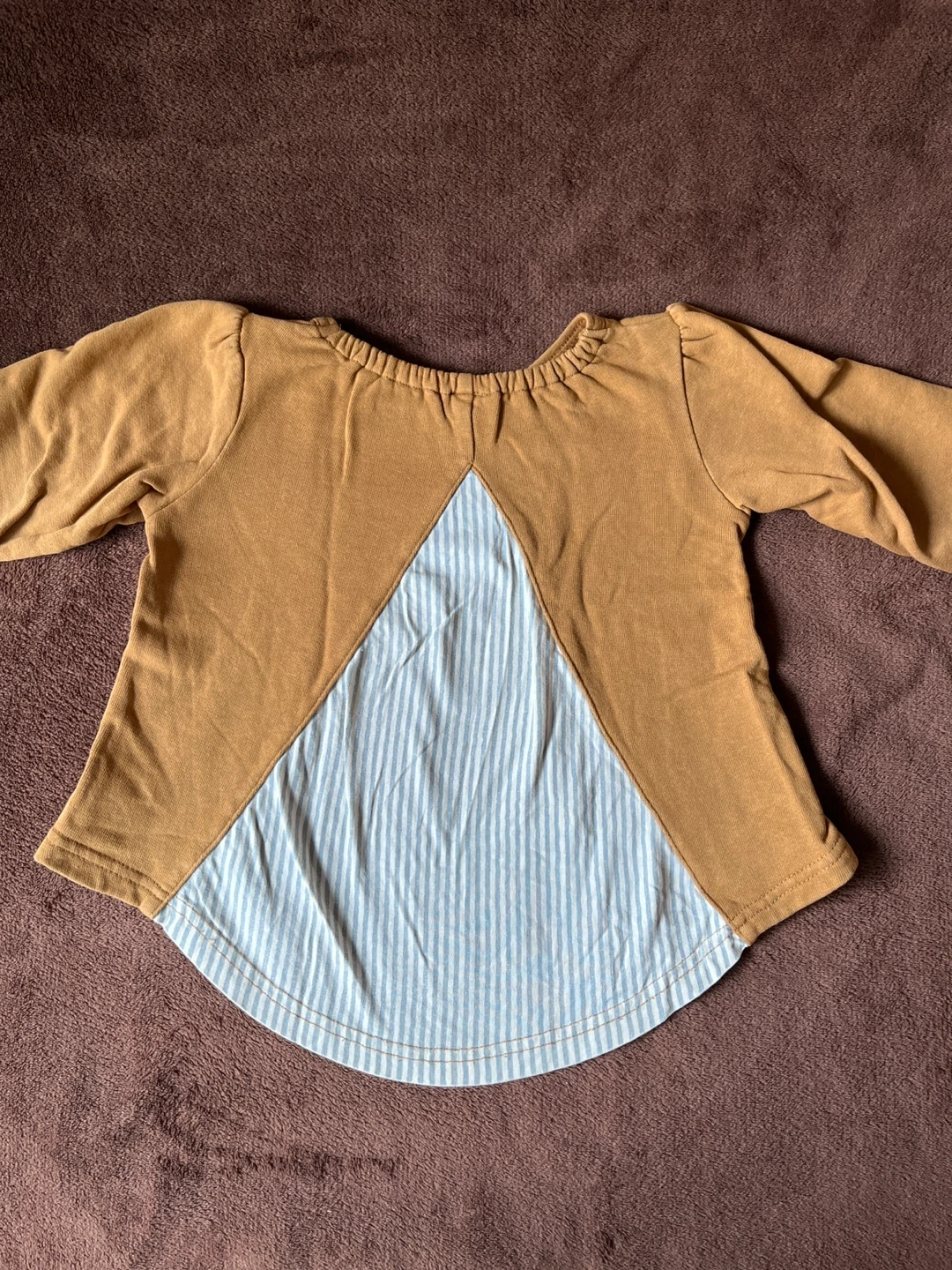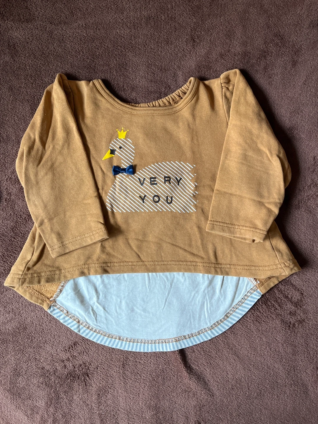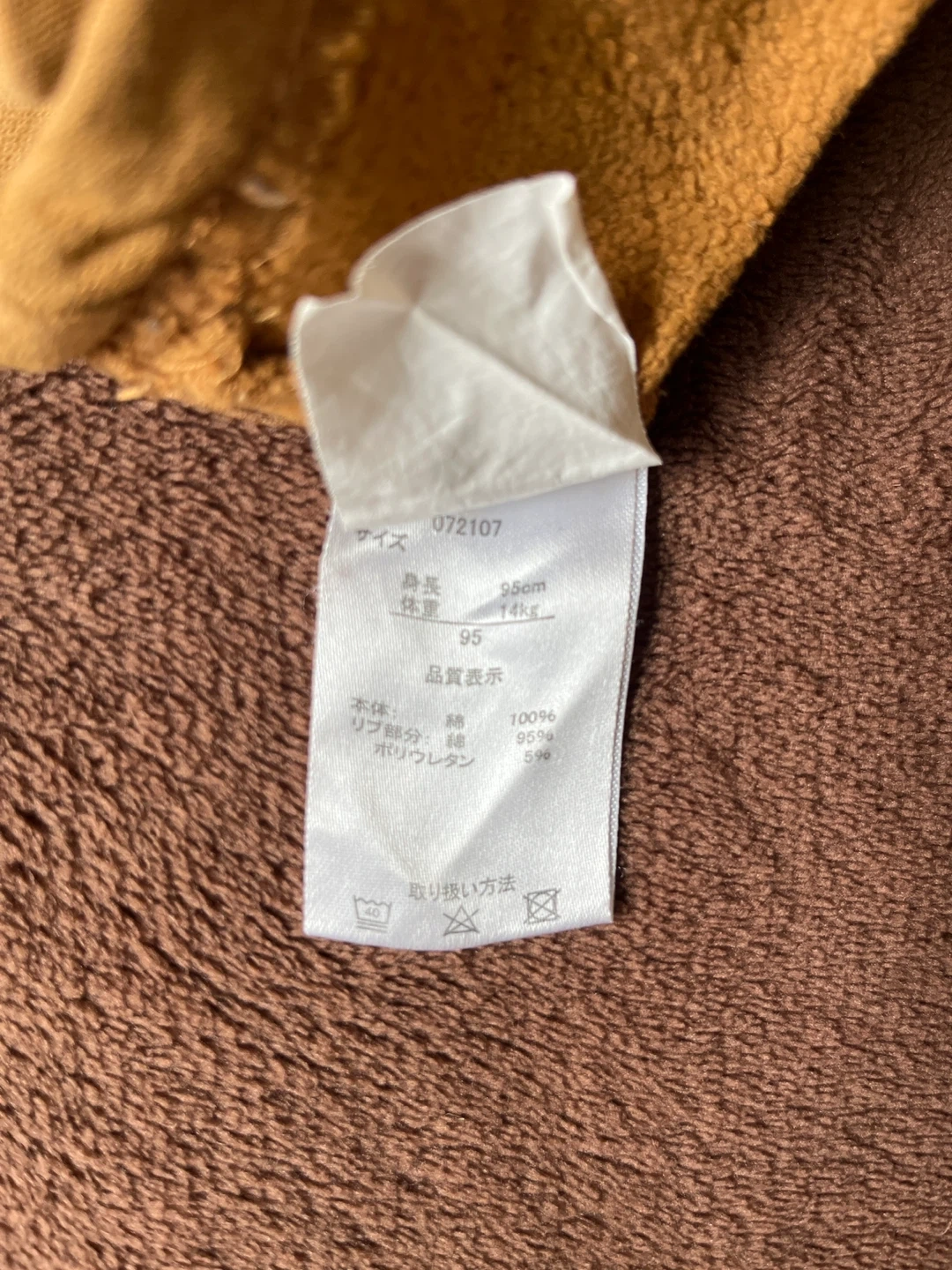 あたたかさ後ろのデザインがかわいいスウェット素材のトップスです。 ・色:茶色 ・サイズ:95cm ・状態:使用感少なめ 中古品であることご了承ください