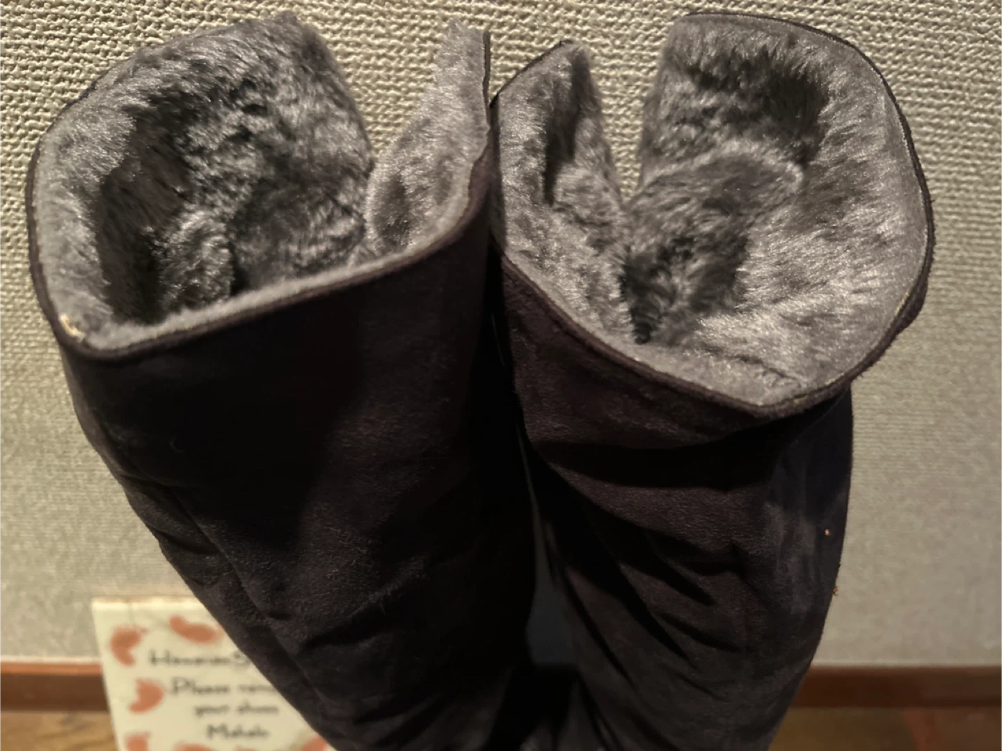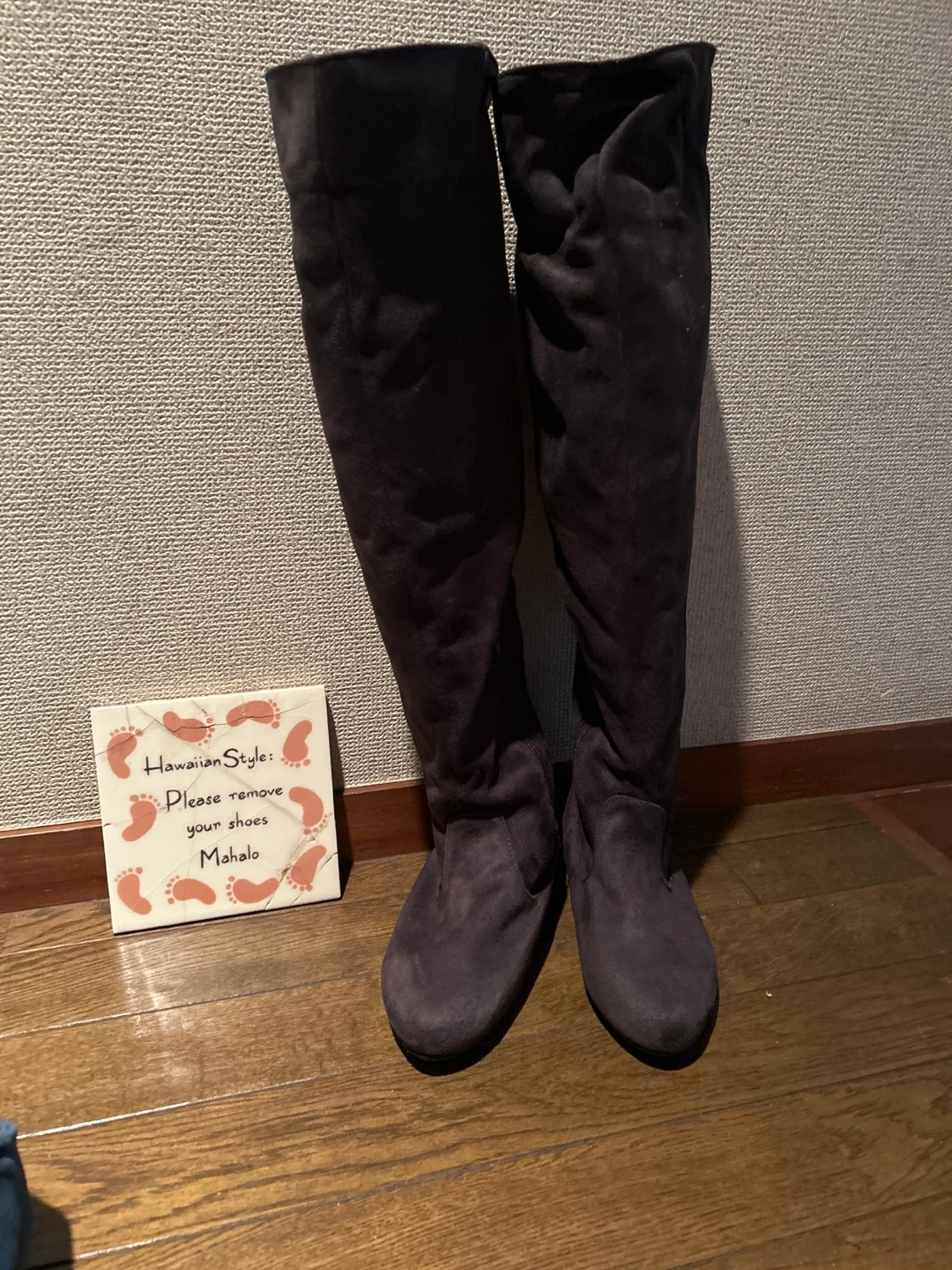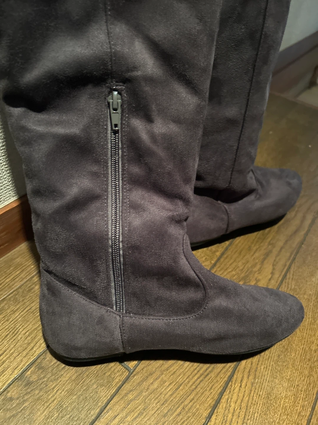 ピーチジョンのスウェード調ロングブーツです。 内側はふかふかの素材。足の内側にジッパーの開口部あります。ヒールの内側が上底、少し高くなっています。もも、膝部分の開口部は折り返して履くことができます。一度も履いておらず自宅保管していました。 サイズは23センチだったと記憶しています。サイズ表記はありません。箱なし。 試着も可能。事前にご相談ください。 処分のためお安くしています。