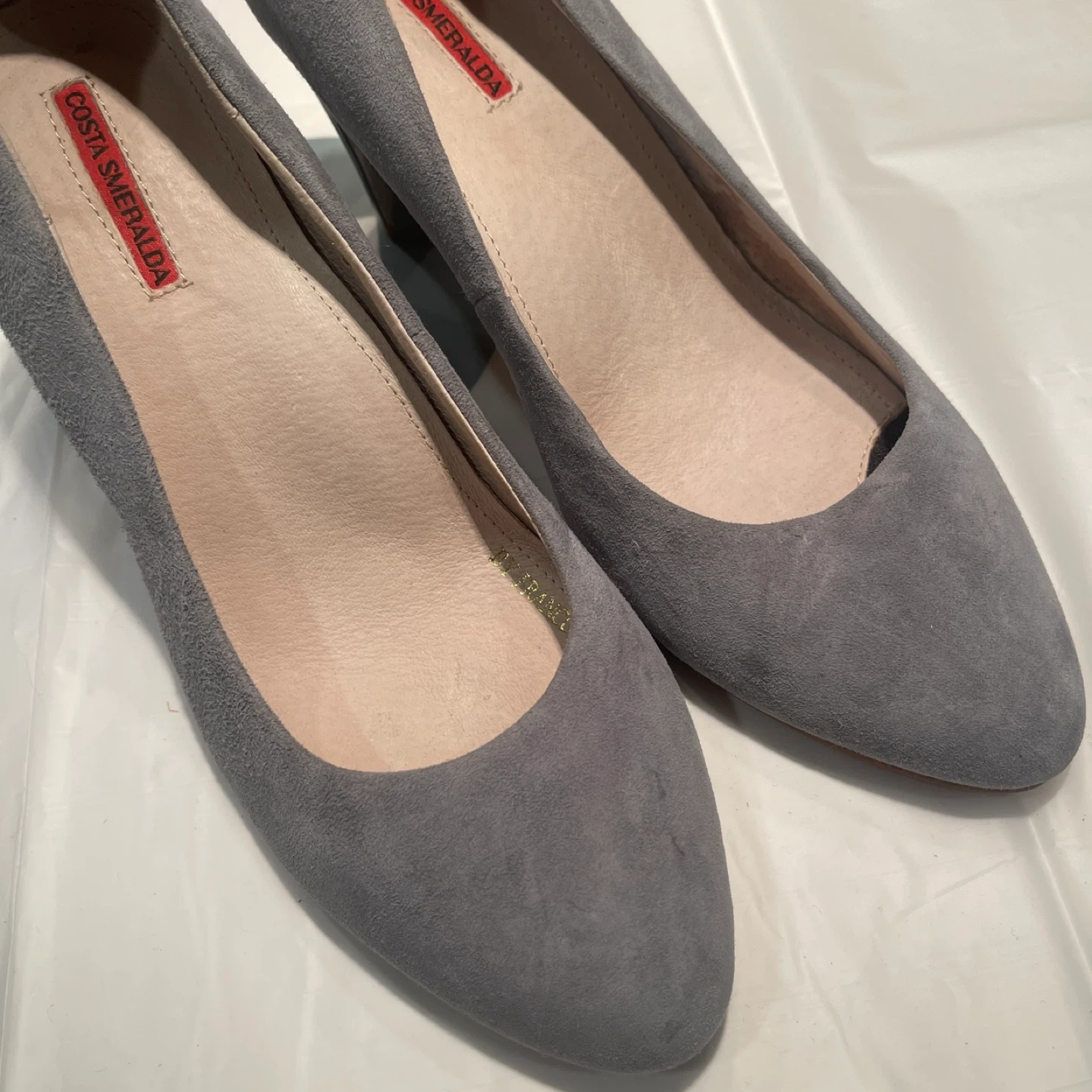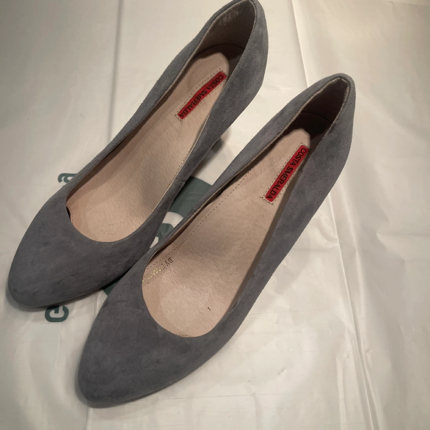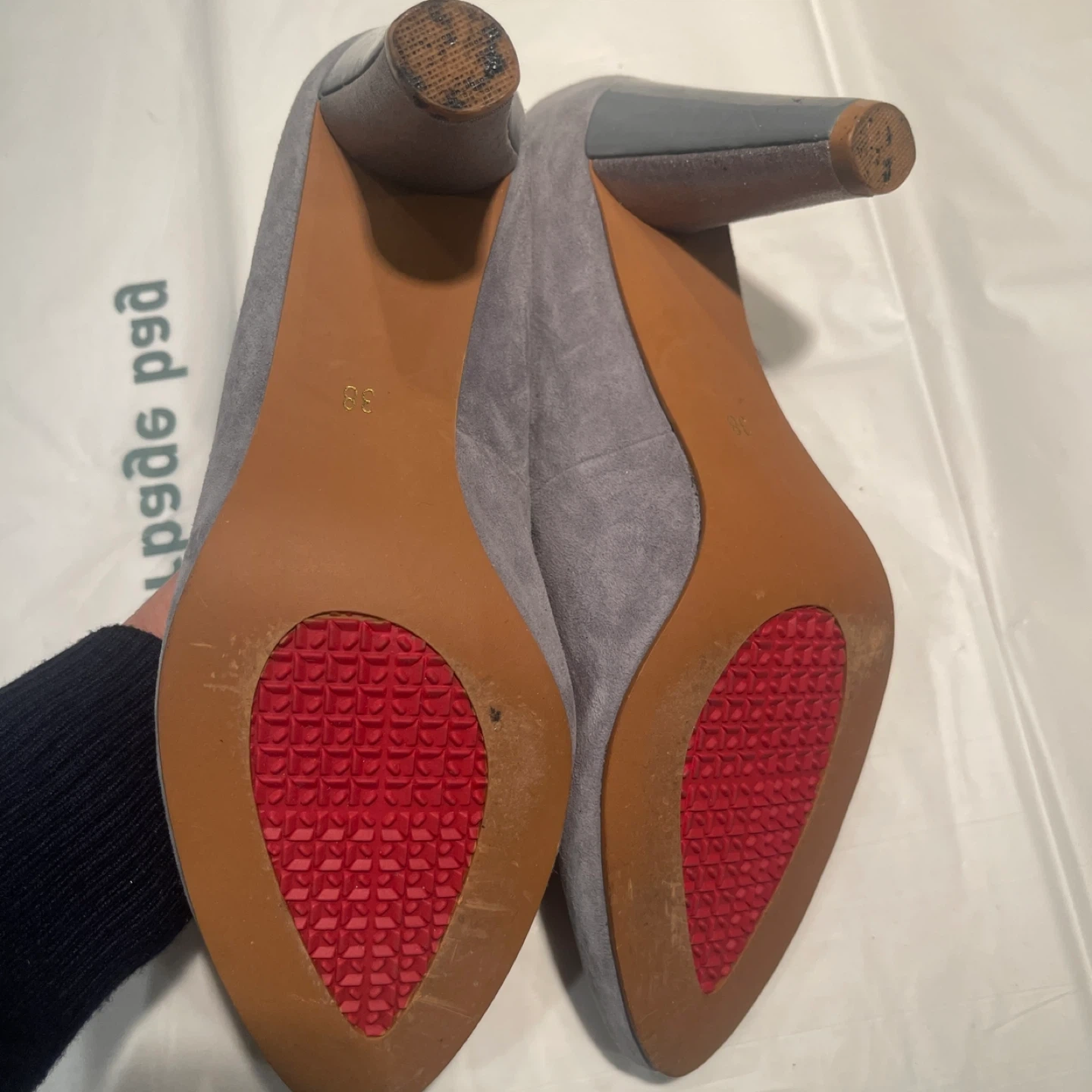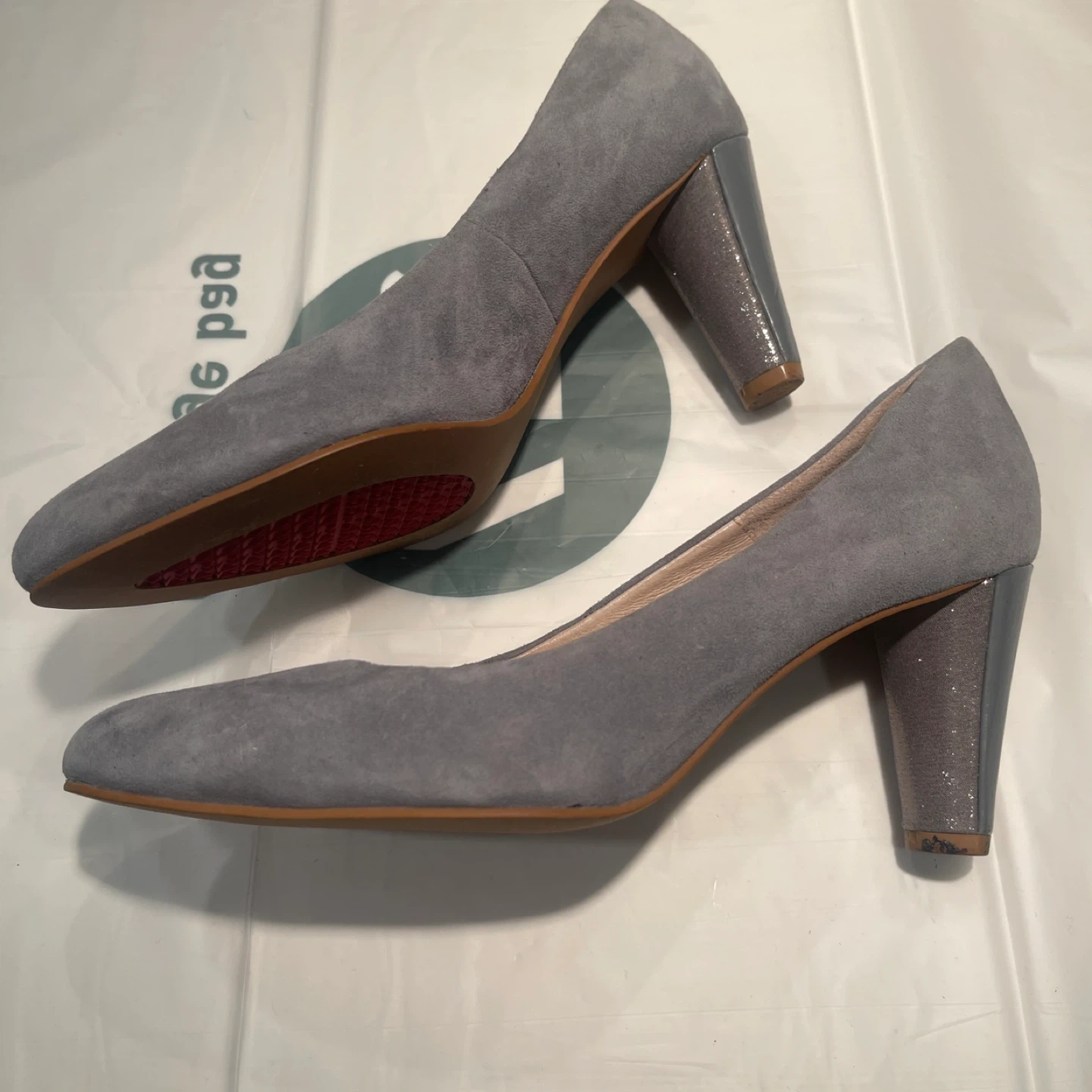 底がしっかりして疲れにくいパンプスです。 イタリアの革を使用して日本で作られたもので、裏側には滑り止めが付いていたり、土踏まず部分がもり上がっていたりと機能的です。 かかとは光沢のある合皮で貼られているので、汚れが付きにくいと思います。色違いで2足買いましたが、最近ヒールを履けないので出品します。 ・色:グレーがかったブルー ・サイズ:38/24cm ・ヒール8cm お取り引き場所は、ノット東京(新宿)、大江戸線・西新宿五丁目駅、都営新宿線・初台駅東口のいずれかでお願いしたいです。 日時のご希望2択ほどと共にご連絡をお願いします。
