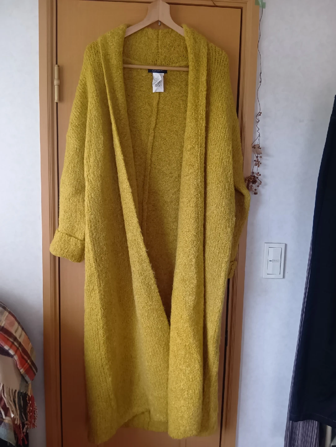 スタニングルアー アルパカ混紡ロングカーディガンです。 3万円以上の品でした。 ・ブランド:スタニングルアー ・カラー:マスタード ・サイズ:M表記ですがフリーサイズ感です。 ・素材:ウール35%、アクリル24%、ナイロン19%、アルパカ18%、ポリアミドール4% 中古品であることご了承ください