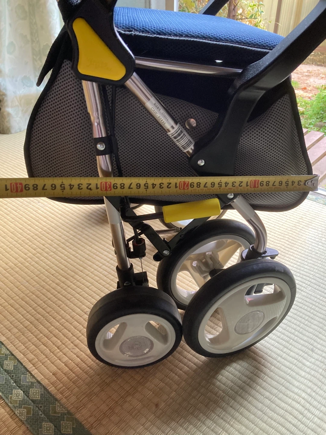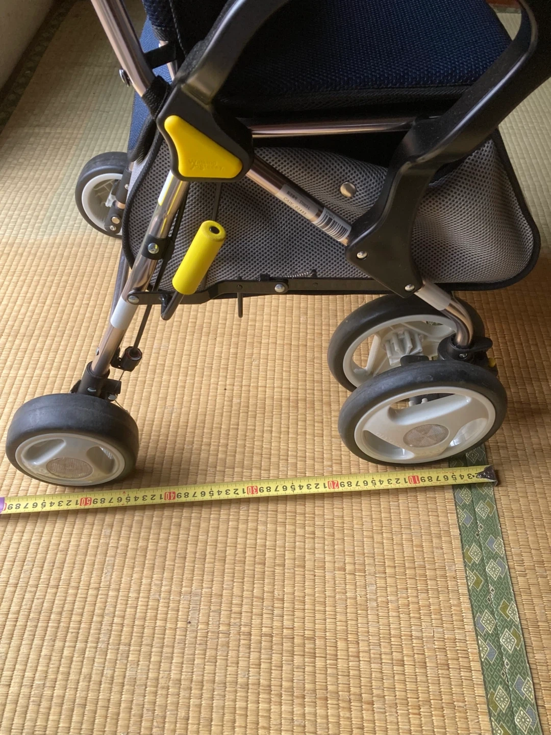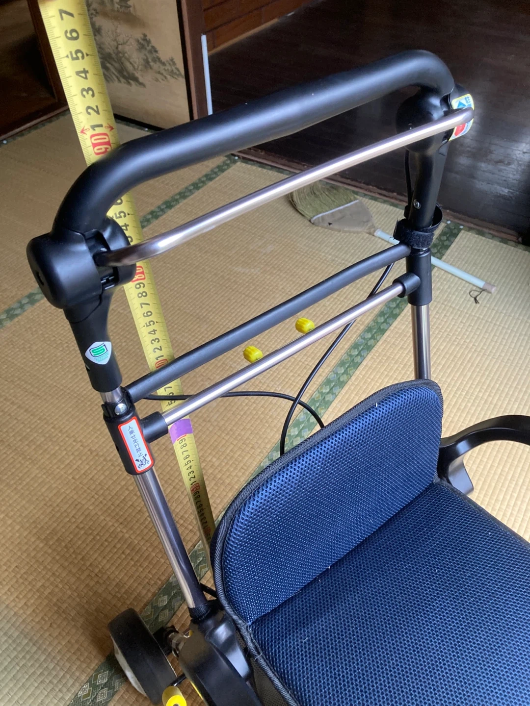 歩行補助車です。状態 良 綺麗 ・サイズ: - 幅 約40cm - 奥行 約56cm - 座面高さ 約28cm - 背もたれ高さ 約39cm ・型番:ST003-L スタンダードシルバーカー 主な特徴 背の高い方でも使いやすいよう、ハンドルの高さが90.5〜105cmまで8段階に調節可能です。 後輪が広く溝にはまりにくい構造になっており、安定した走行が可能です。 ハンドブレーキと駐車ブレーキ(手元押し下げ式)の両方を備えており、安全に使用できます。 3WAYキャスター(直進固定・回転角度90度・360度回転)により、操作性が高いです。 本体重量は約6.2kgで、耐荷重は100kgです。 中古品であることをご了承ください。