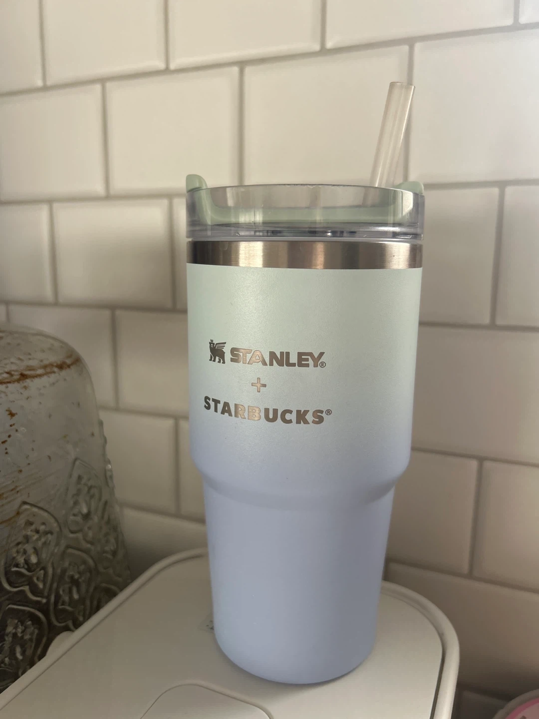 スタンレーとスターバックスのタンブラーです 2-3回しか使用せず保管してました。 全て洗ってアルコール消毒済みです。 蓋とストローに少し傷があります。 使い始めた初日に落としてついてしまった傷です。 ただそんなに目立たないです。 チケットと箱はありません。 他のフリマサイトだと5,800円が最安値でした。 【情報】 ブランド:スタンレー、スターバックス 容量:591ml (20 fl oz) 【状態】 使用感はかなり少なめ 中古品であることご了承ください。