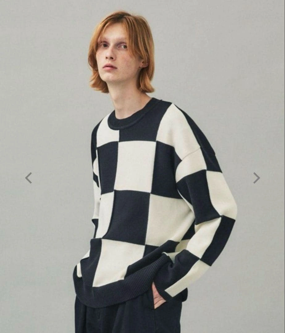 立体的なブロックチェック柄のプルオーバーニットです。 一枚一枚の四角パネルはそれぞれ異なる編み目を使用し奥行きを持たせ、更にパネルの接ぎ合わせを立体的にすることで平面的で単調なチェッカー柄ではない存在感に仕上げました。 ボディはほどよく肩を落としたリラックスシルエット。一着で絵になるニットです。 国内有数のニット産地である新潟の中でも高い技術力を誇るニット工場で作成したフラッグチェック柄プルオーバーニットです。 “AIR SPONGE PROCESS”という特殊加工を施し《ストレッチ》《立体感》《軽量性》《イージーケア》に特化した4つの特徴を持つ上質な国内糸を使用しています。 着用時のストレス緩和、ニットらしい立体感、ご家庭でお洗濯可能と機能/デザイン両面に優れています。 【実寸】 2:身幅64 肩幅59 着丈68 そで丈54 状態は画像より判断お願いします。