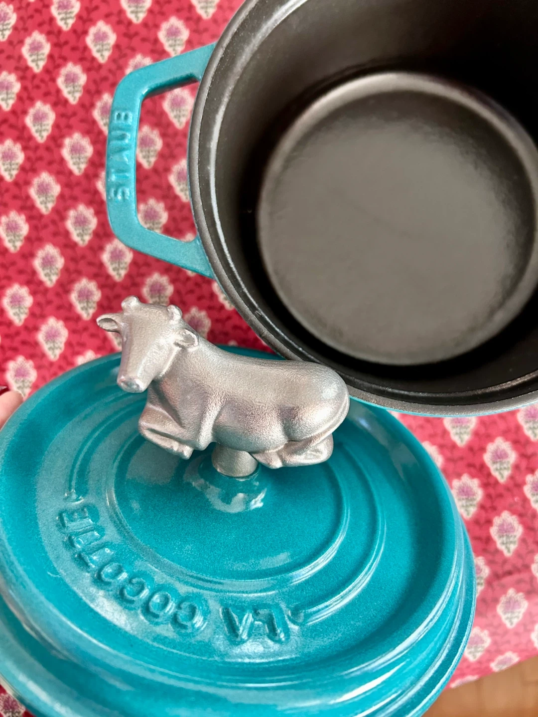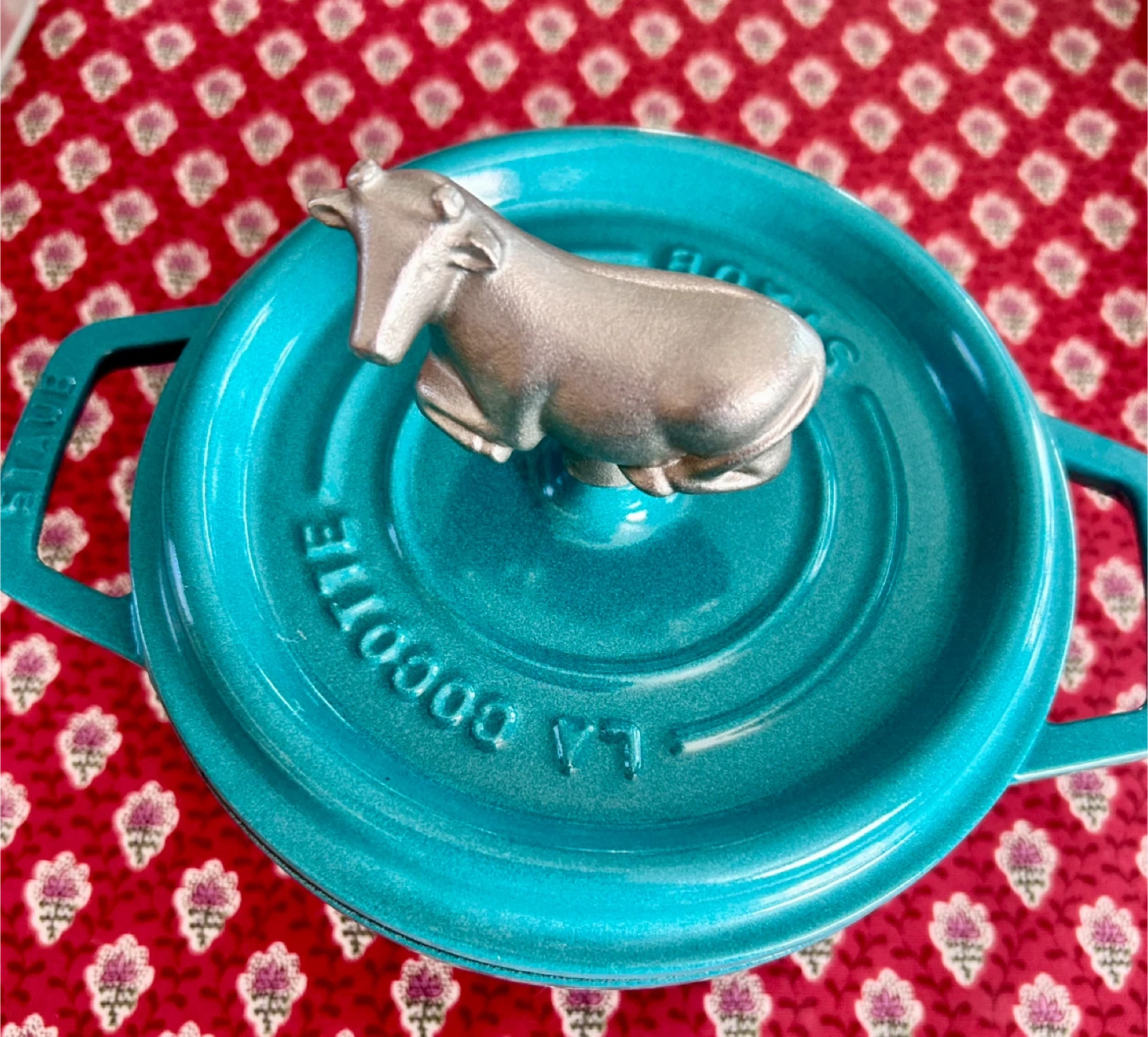 ストウブの鍋16cm 使用回数は1回、新品同様美品です 珍しいターコイズブルー 純正のストウブカウノブをお付けします。 牛が草原に寝そべっているイメージで付けました。可愛いです^ ^ プラスドライバーで簡単に付け替えられます。 ・ブランド:ストウブ ・色:ターコイズブルー ・その他:蓋に牛の飾りがついています。 お受け渡しは 環八ニトリ入り口付近も可能です