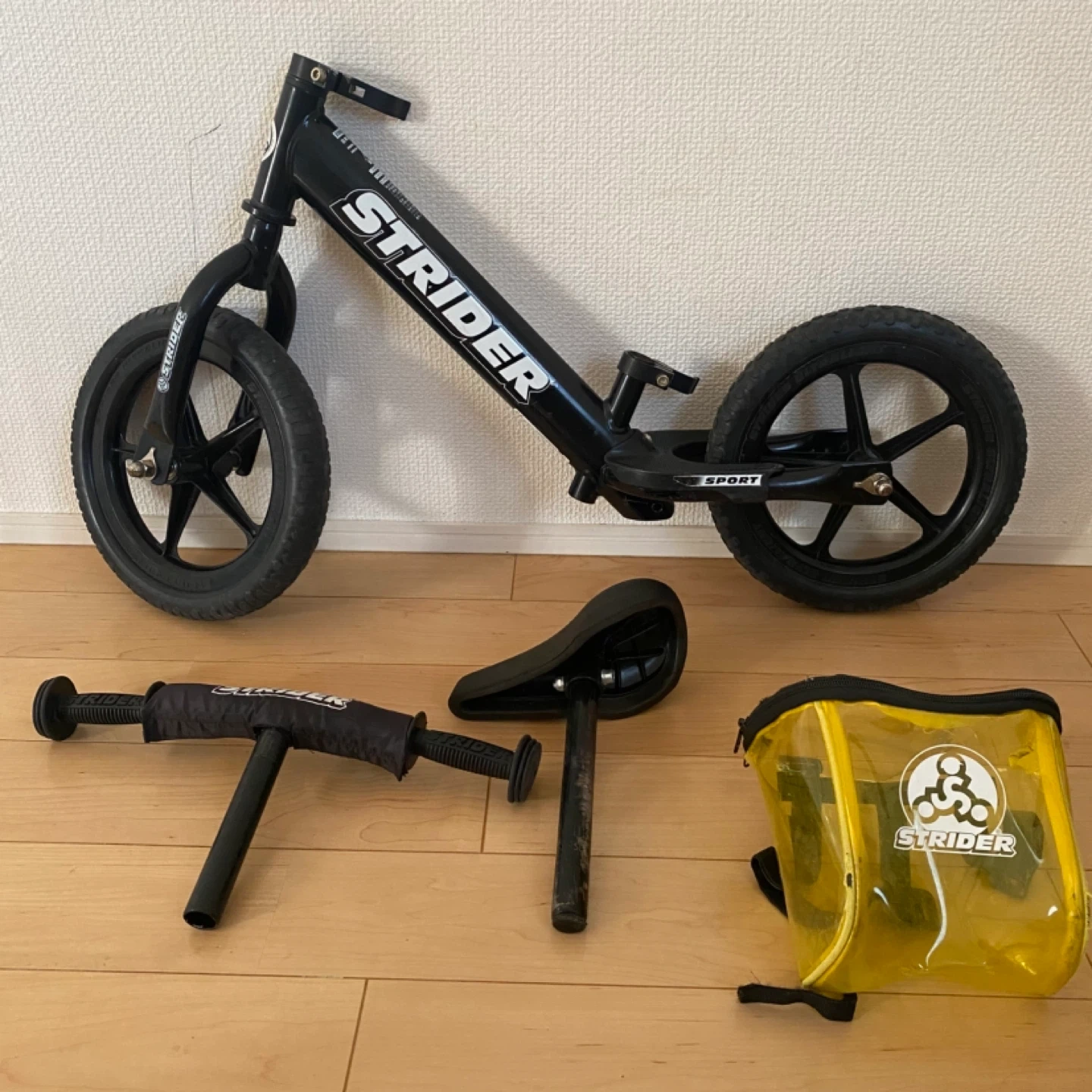 ご覧いただきありがとうございます。 ストライダーのバランスバイクです。 ・ブランド:ストライダー ・色:ブラック ・付属品:黄色のポーチ付き ・状態:使用感あり サビや傷は所々あります。 サドルに一部破れがありますが、問題なく乗ることはできます。 詳細は写真にてご確認いただけますと幸いです。 子供が使用しておりますので、細かな傷や汚れがあります。素人保管ですのでご理解の上でご購入ください。 ご不明点ございましたらコメントお願いいたします。