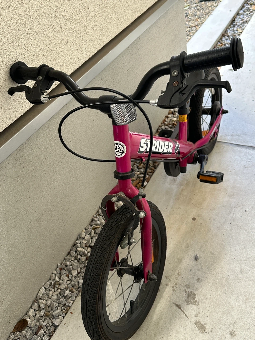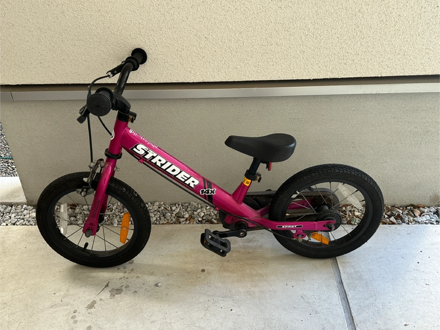 あたたかさストライダー14xの自転車です。 ・ブランド:ストライダー ・モデル:14x ・色:ピンク ・ペダル付き ・使用感あり 中古品であることをご了承ください。