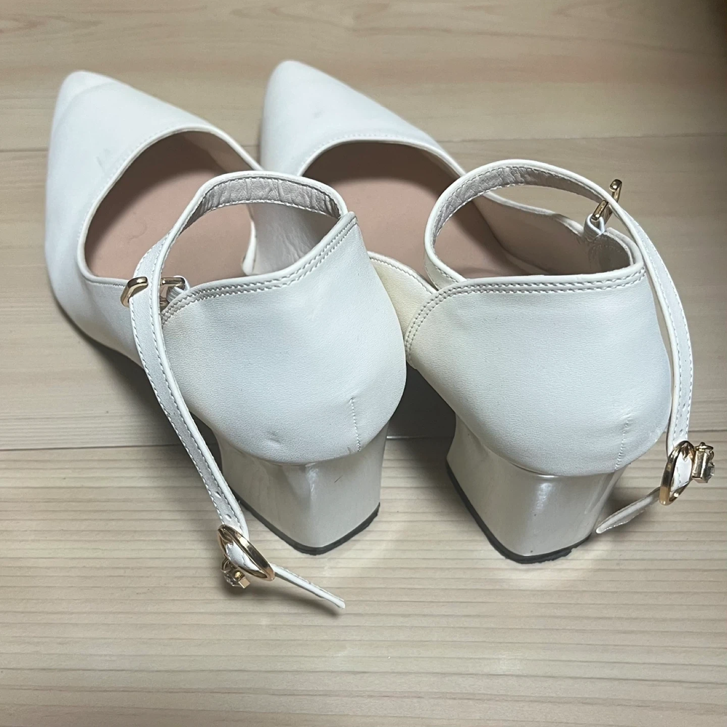 ストラップ付きのパンプスです。 ・色:白 ・サイズ:36 ・使用感あり 中古品であることをご了承ください。 箱が無いため現物でのお渡しとなります。 受け渡し場所は最寄り大泉学園駅付近の自宅にて【非対面取引】となりますのでご了承ください。