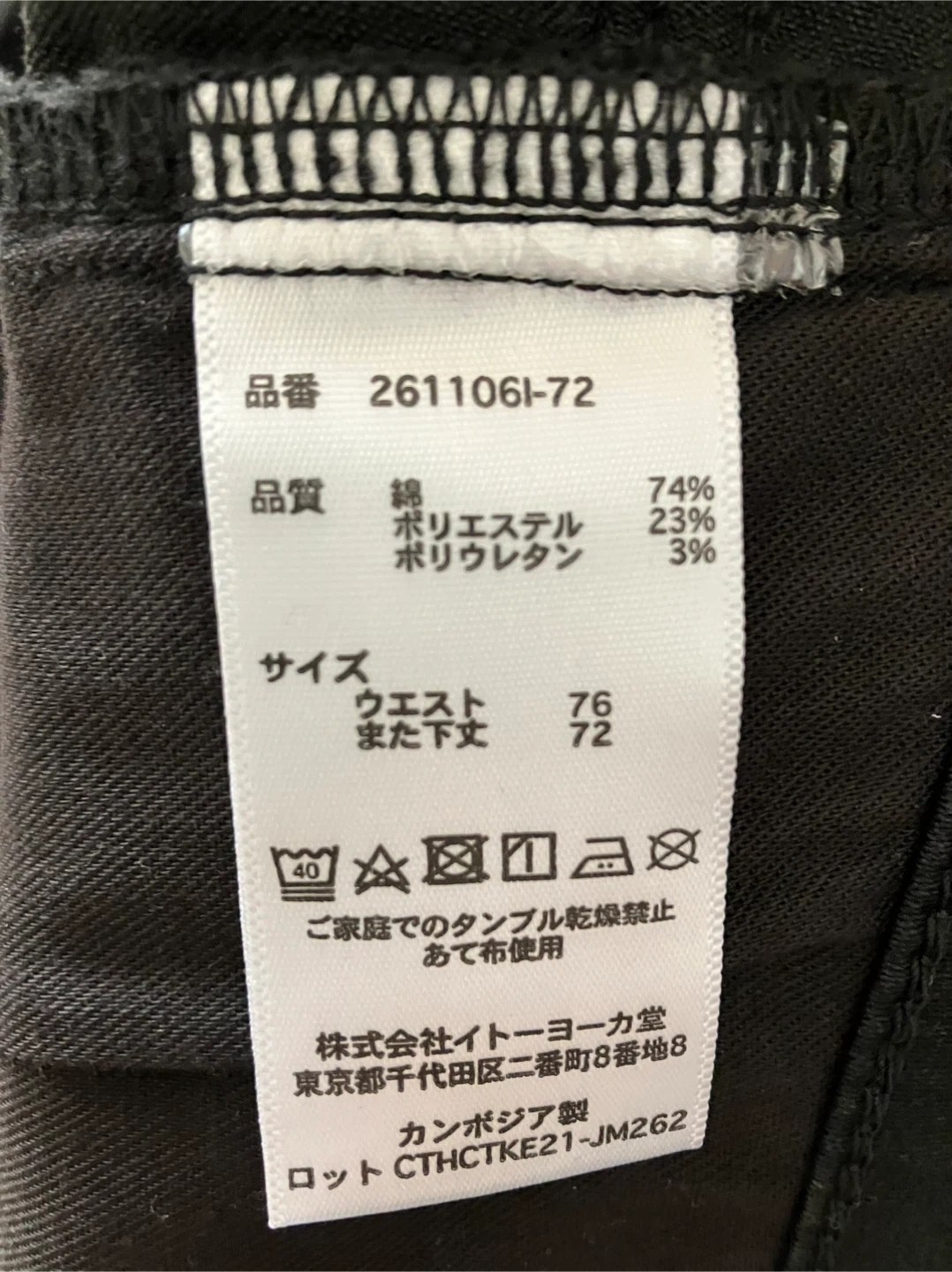 少しだけストレッチ素材のスリムジーンズです。 未使用品です。 股上が浅く、細めです。 色:真っ黒(写真1、2枚目) サイズ:ウエスト76cm 股上25cm 股下72cm 裾の幅:17cm ファスナー長さ:11cm 素材:綿74% ポリエステル23% ポリウレタン3% 生地の厚さ:普通 金具:黒 メーカー:イトーヨーカドー ご不明点があればお気軽にご連絡ください。 ☀️晴れていれば祖師ヶ谷大蔵駅周辺でもOKです🚲