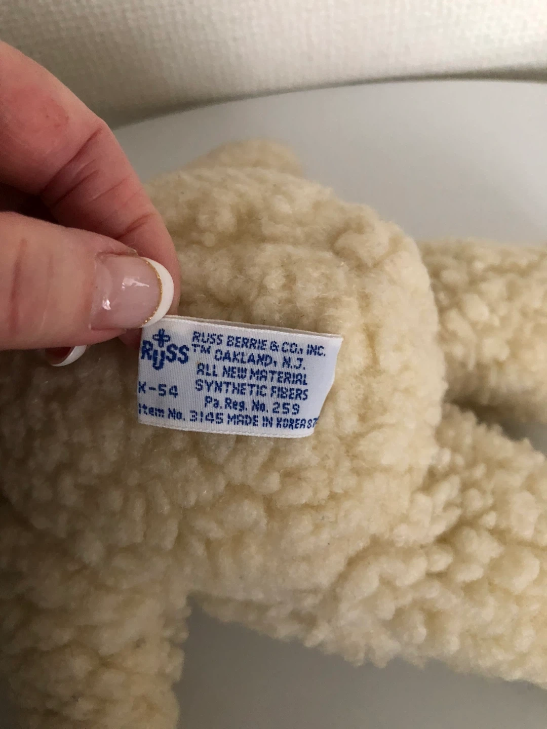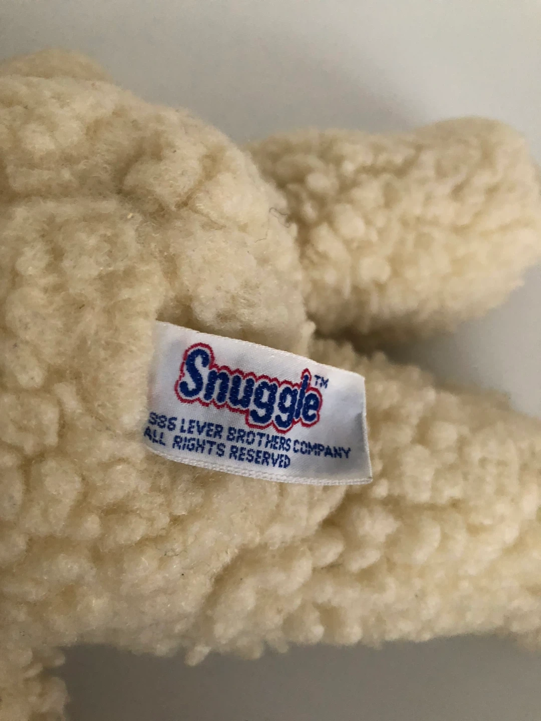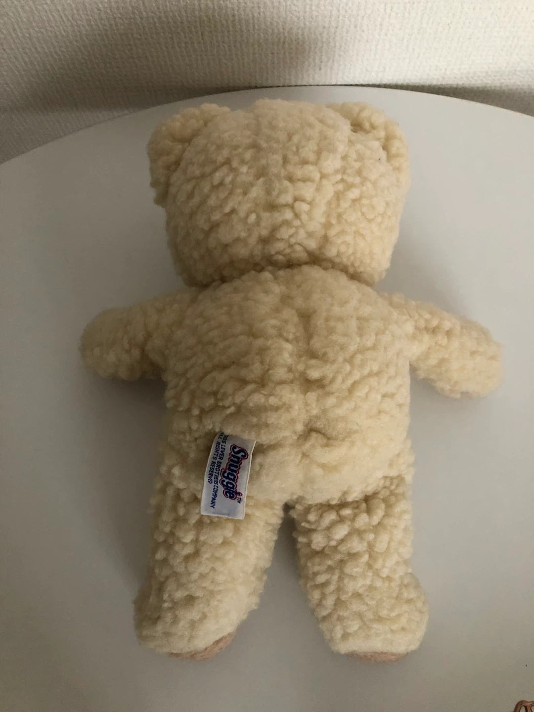 スナッグルのテディベアのぬいぐるみ、 日本では、おなじみファーファです。 アメリカアンティーク雑貨を扱うお店で購入してからショーケースに飾ってました。 ・ブランド:スナッグル ・色:オフホワイト ・状態:使用感少なめ ・全長30㌢程 1985年製ヴィンテージ 購入時の状態を維持しておりきれいですが 中古品であることご了承ください。