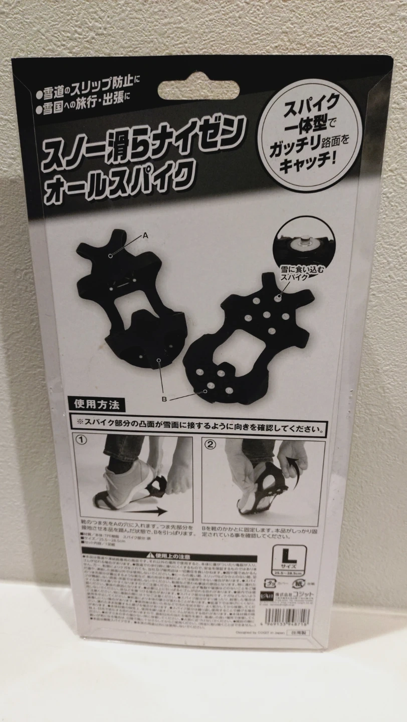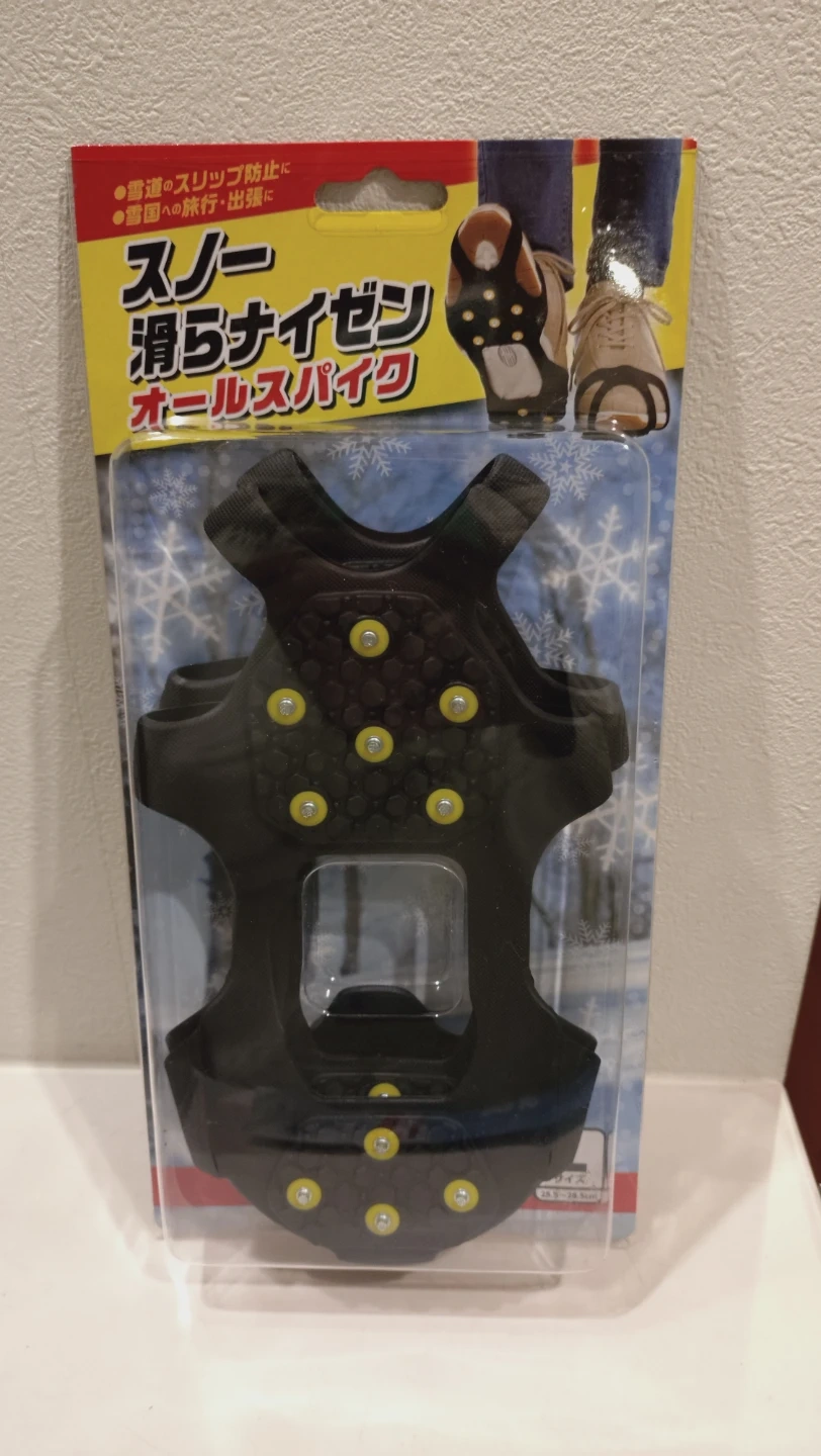 スノー 滑り止め スパイクです。 ・雪道のスリップ防止に ・雪道への旅行・出張に 「スノー滑らナイゼン オールスパイク」という、靴に装着するタイプの滑り止めスパイクです。 雪道や凍結路面でのスリップ防止を目的としています。 いつもの靴の上から簡単に装着でき、スパイクが路面をしっかりと捉えます。 雪国への旅行や出張、雪の日のウォーキングなどに便利です。 本体はTPE樹脂製で、スパイク部分はポリプロピレンと鉄でできています。