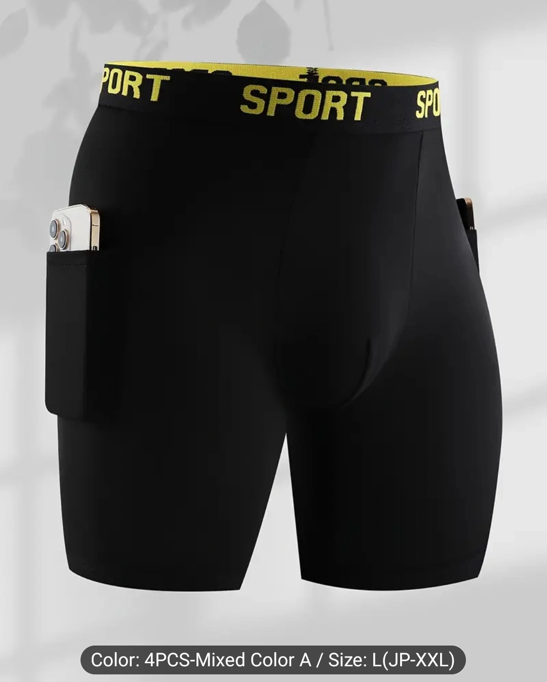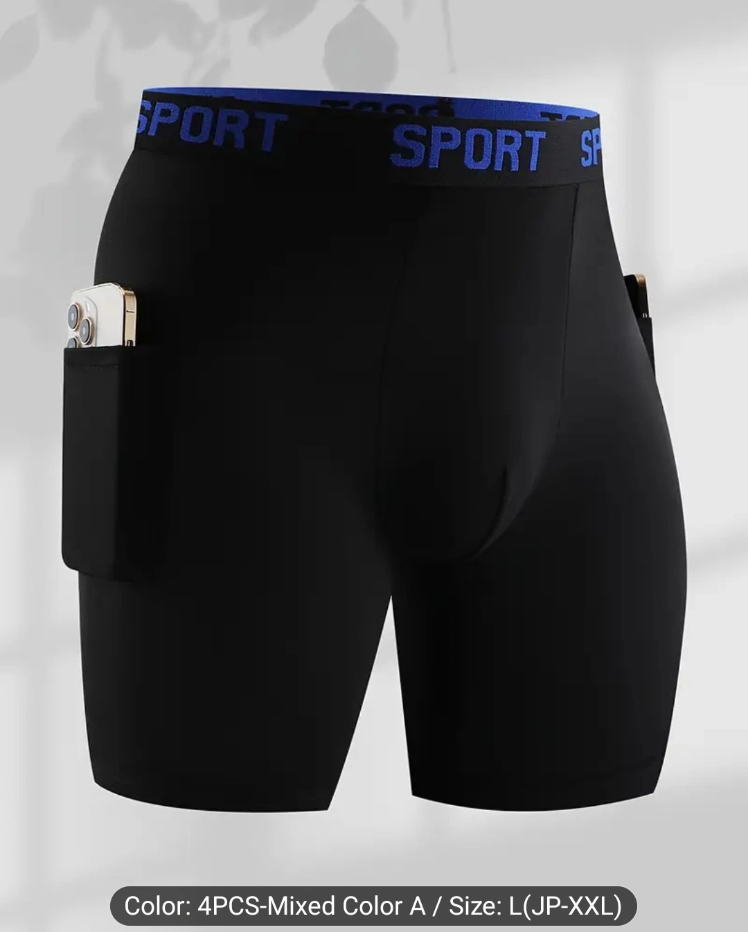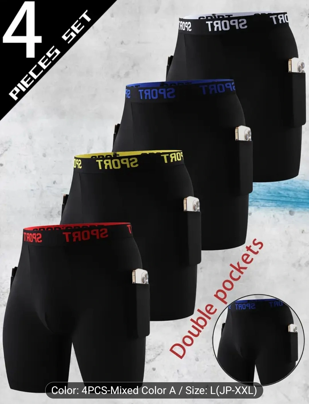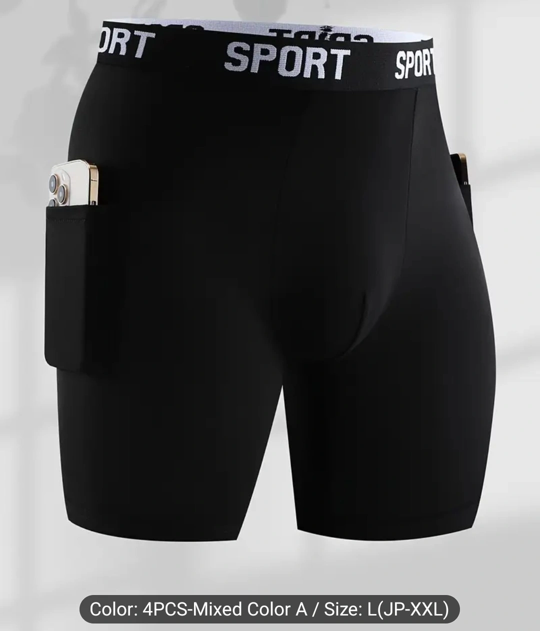 スポーツインナー4枚セットです ・カラー:黒(ウエスト 部分の色は赤、青、黄、白の混合) ・サイズ:L(JP-XXL) ・サイドにポケット付き ご不明点があればお気軽にご連絡ください
