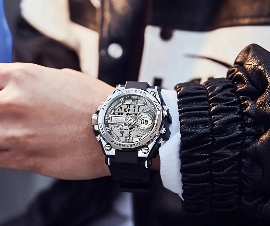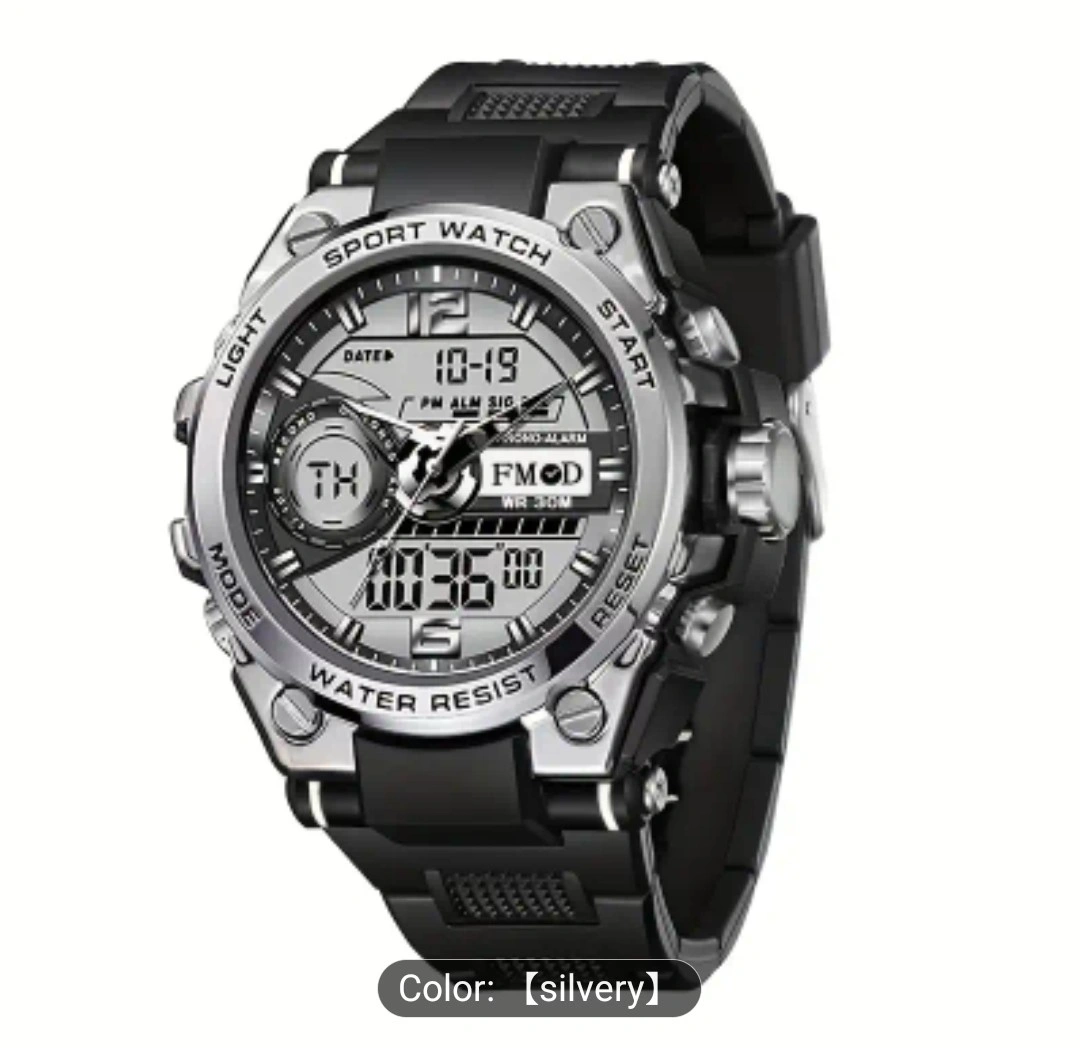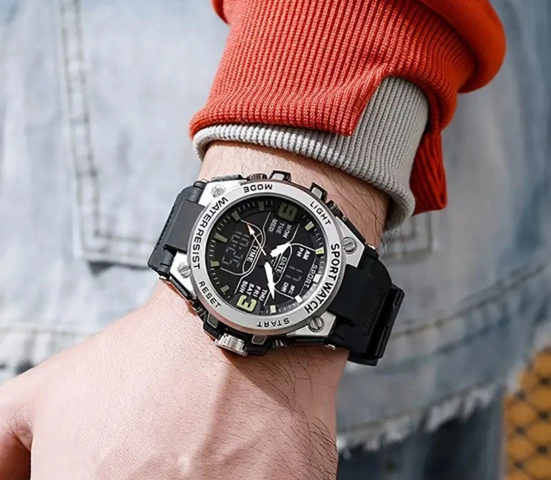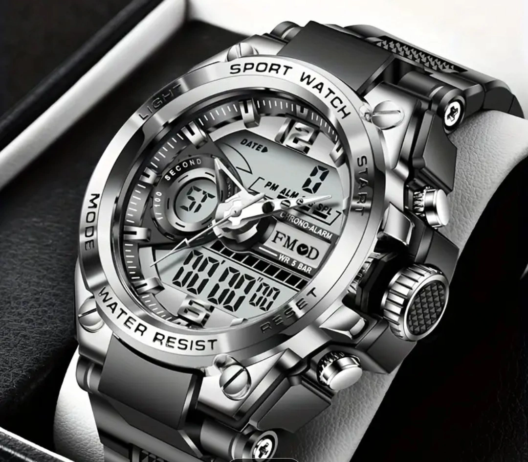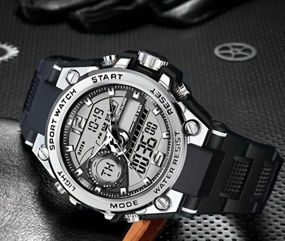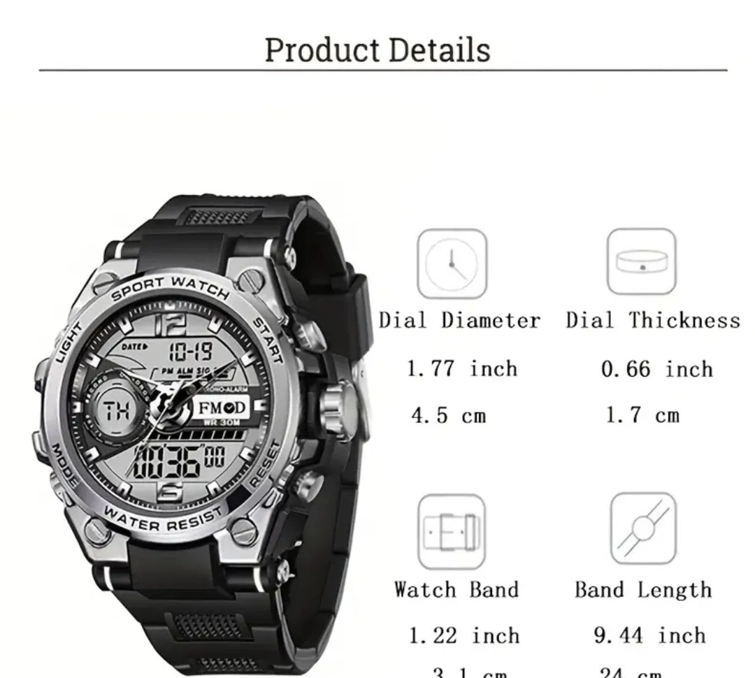 スポーツウォ ッチです ・色:シルバー、ブラック ・文字盤サイズ:約4.5cm ・バンド長さ:約24cm ・WATER RESIST(防水) ご不明点があればお気軽にご連絡ください