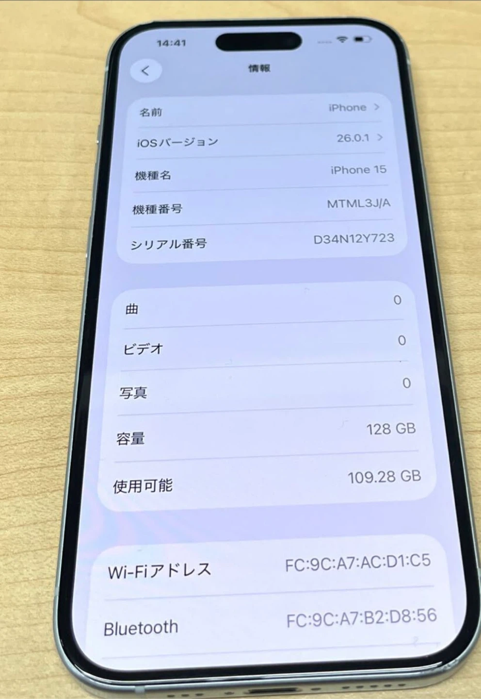 初期化済み 359987251357476 角に少しへこみあり 画像が全てとなります。 動作確認済み 商品状態はチェックをしておりますが、素人判断の為見落とし等ある場合がございます。 細部などが気になる方のご入札はご遠慮いただけますようお願い致します。 状態付属等につきましては画像にてよくご確認ください。 写真のものが全てです。 ■注意 【注意事項】 ●ノークレーム・ノーリターン厳守でお願い致します。 ●中古品とご理解いただける方のご入札をお願いします。 ●神経質な方のご入札はご遠慮お願い致します。 落札後三日以内の入金をお願いいたします。 ご連絡が取れない場合キャンセル扱い・悪い評価となります。 中古品となりますので使用に伴う多少のキズや汚れがございますのでご理解に上入札下さい。 ■送料 全国一律送料無料 iPhone 15 128GB ブルー ブランド:Apple iPhone iPhone 15