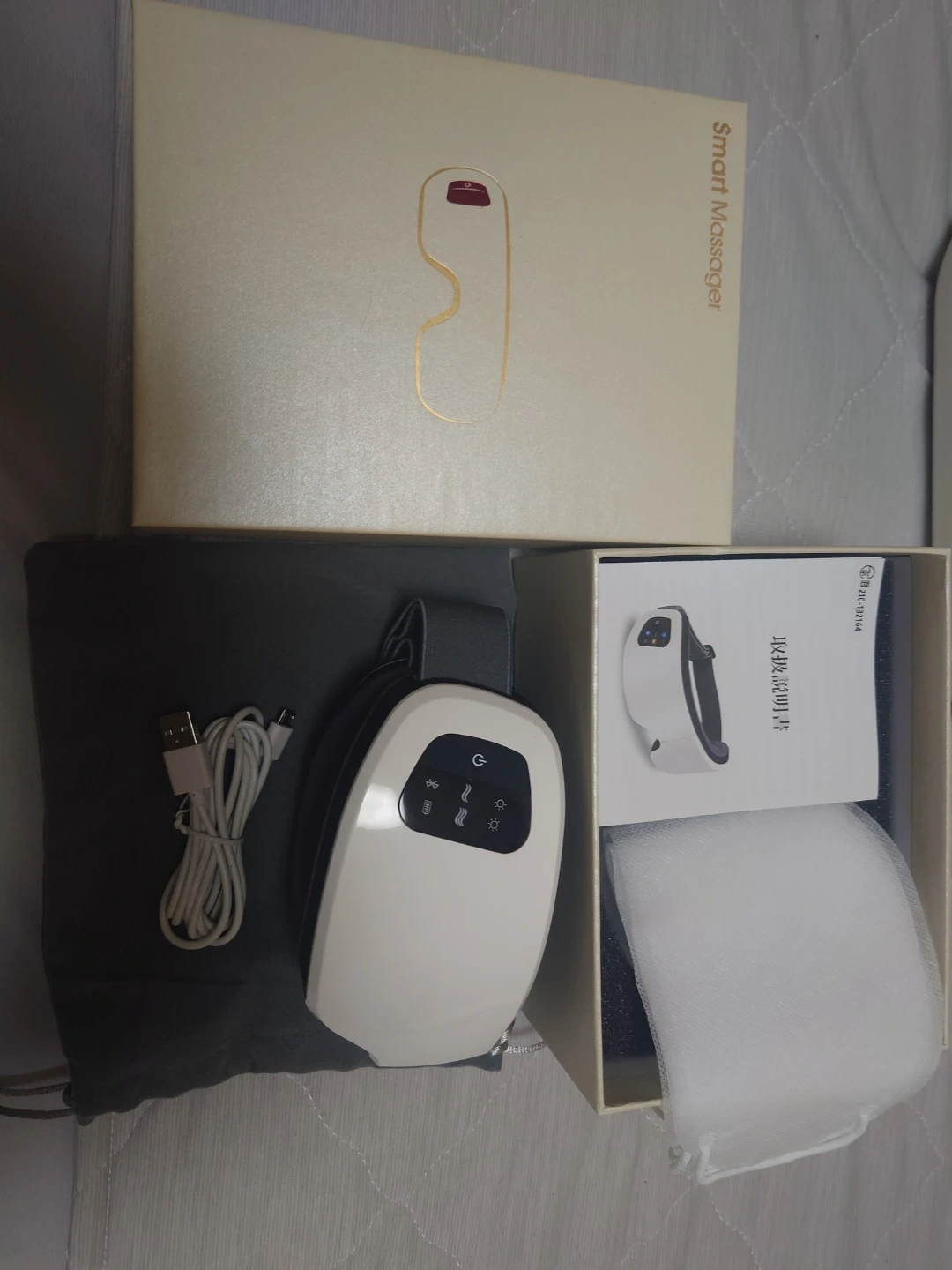 スマートマッサージャーです 種類:目元スマートマッサージャー 【状態】 数回使用 目立った汚れ等無し 【付属品】 箱、説明書、充電USBケーブル、収納袋 保護紙 中古品であることご了承ください