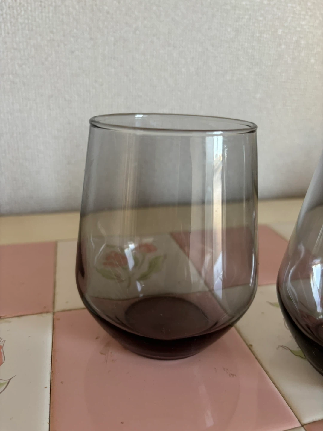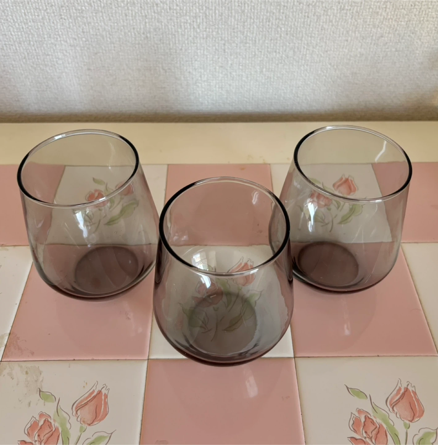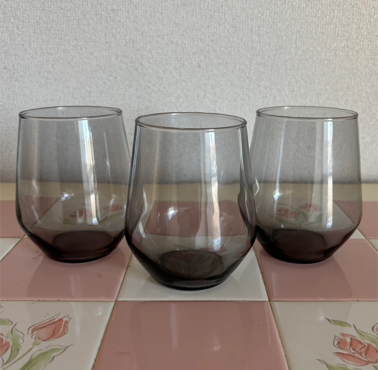 スモークグレーのガラスコップ3個セット。 高さ 約11センチぐらい 飲み口直径 約7.5センチぐらい 酷いダメージはみあたりませんが、 自宅保管品、中古品になります。 ご理解ある方にお譲りいたします。 - 色: スモークグレー - 数量: 3個セット - 形状: 円筒形 - 素材: ガラス ご覧いただきありがとうございます。 #グラス #おしゃれ #ロック #カップ #ドリンク