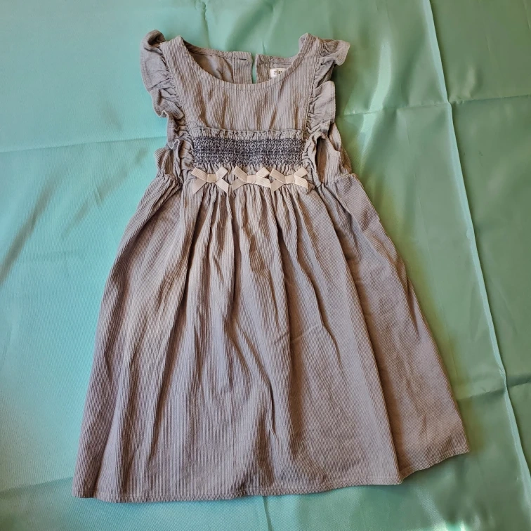 スラーフのワンピースです。 ・サイズ:110 ・色:ブルーグレー (光の関係で色味がお伝えずらくすみません。) ・胸元にリボン付き ・使用感少なめ おでかけに可愛いワンピースです 子供の使用品になります。 ご理解の上、ノーリターン・ノークレームにてお願いします。 ご不明点ありましたらご連絡ください。