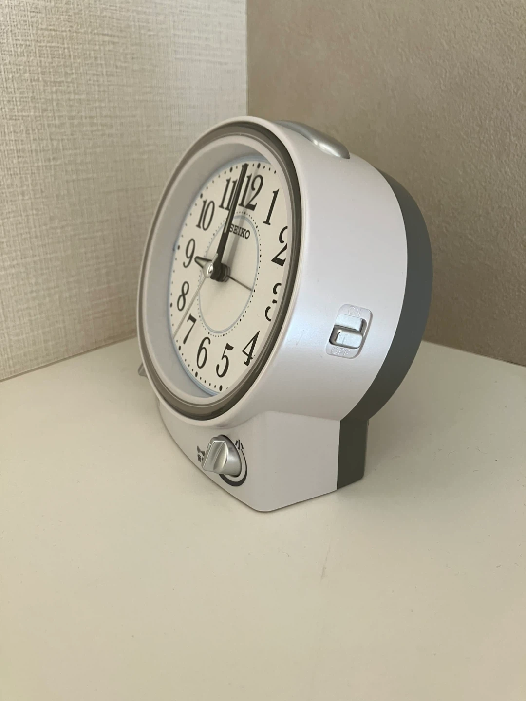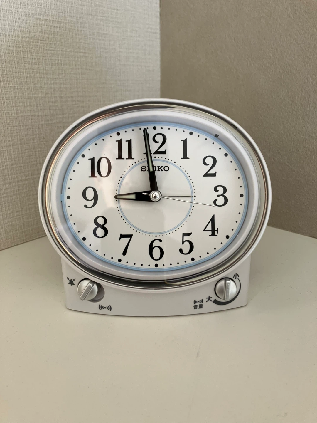 セイコーの目覚まし時計です。 正常に作動します。 目覚まし音は2種類で、音量調整が出来ます。 ライトも点灯します。 秒針のカチカチ音はしません。 購入価格は3,500円でした。 箱と説明書はありません。 サイズ:横幅13cm、高さ12.5cm、奥行9cm 電源:単三電池1本付き メーカー:セイコー 型番:KR892W 中古品であることをご了承ください。 ☀️晴れていて近距離でしたら、ご希望の場所にお届けも出来るかもしれません🚲