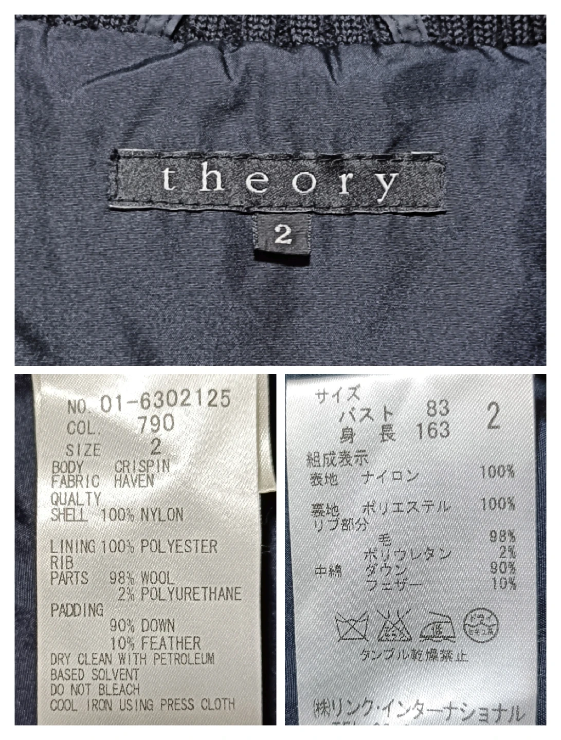 セオリー ダウンベスト CRISPIN HAVEN 黒 サイズ2 ニットリブ