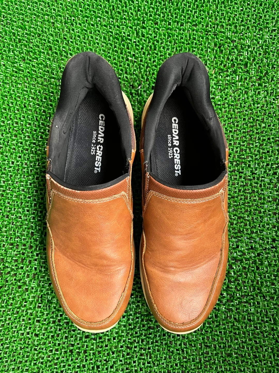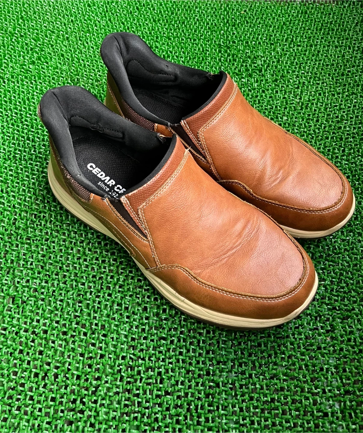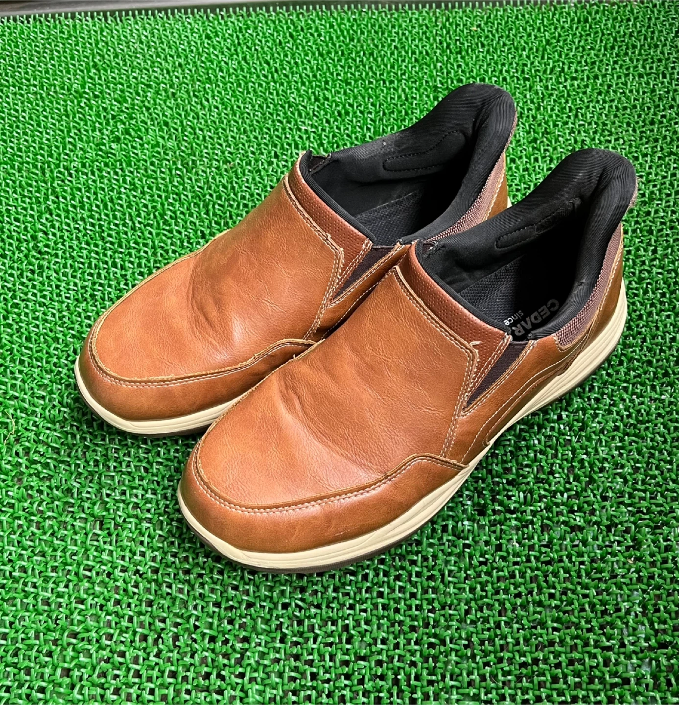 スパッと履ける、スパットシューズです とても脱ぎ履きがしやすく立ったままスパッと履けるCEDAR CRESTスリッポン、快適な履き心地と耐久性のあるゴムソールになっています。 ■ブランド:CEDAR CRESTセダークレスト ■品番: CC-60851 ■カラー:キャメル ■サイズ:27cm ■付属品:なし ■買い物などに履いてましたので履き口周辺に毛羽立ちが見られます。踵はすり減りがあります。 自宅保管していました。