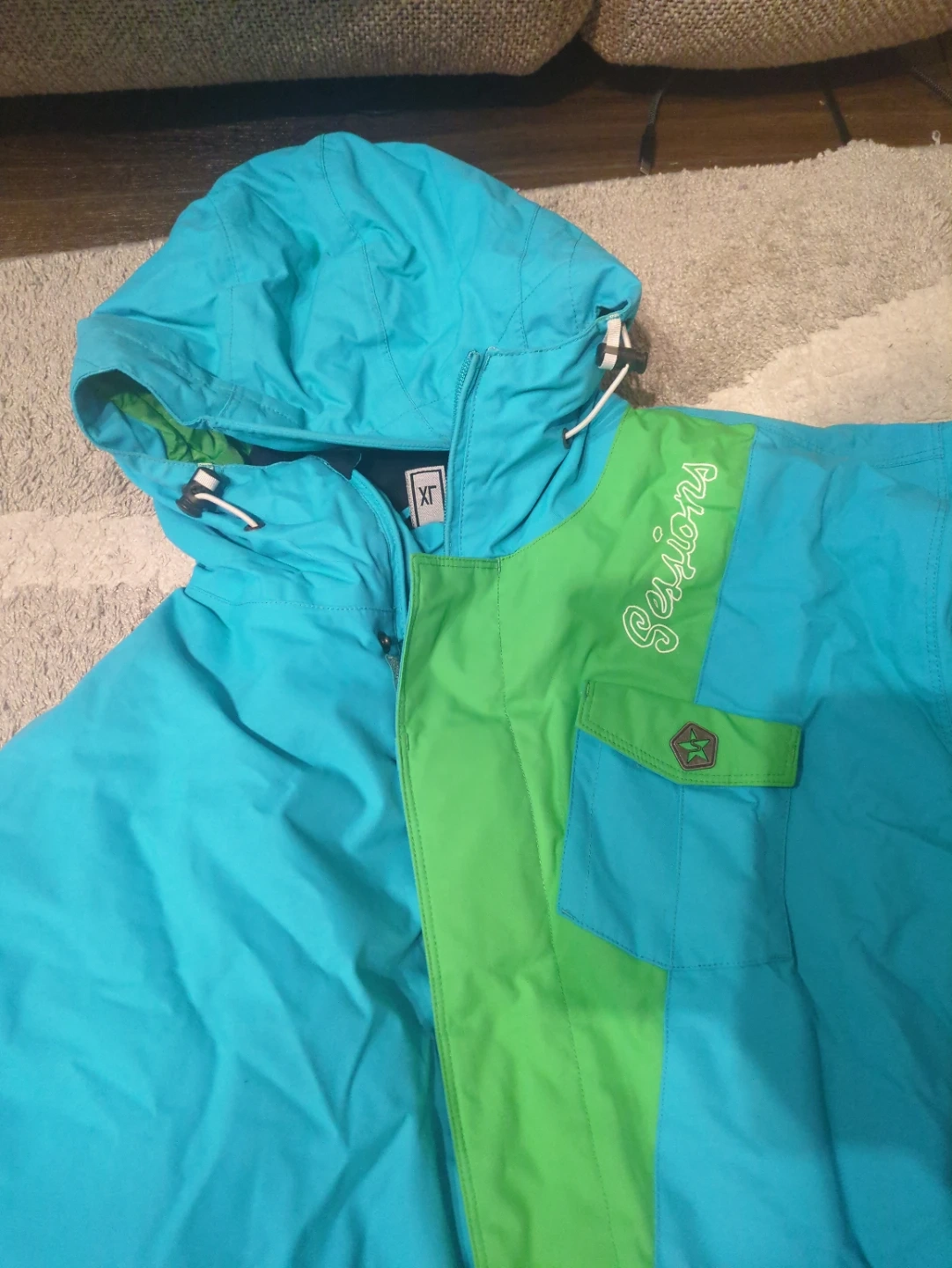 セッションズのメンズのスキーウェア上下セットです。 ・ブランド:セッションズ サイズ XL ・色:水色、ライムグリーン、黒 ・状態:使用感あり 少々汚れが見受けられますが、概ね状態は良好です。 中古品であることをご了承ください。 Sessions VOLCOM BURTON Solomon ノースフェイス Columbia Patagonia