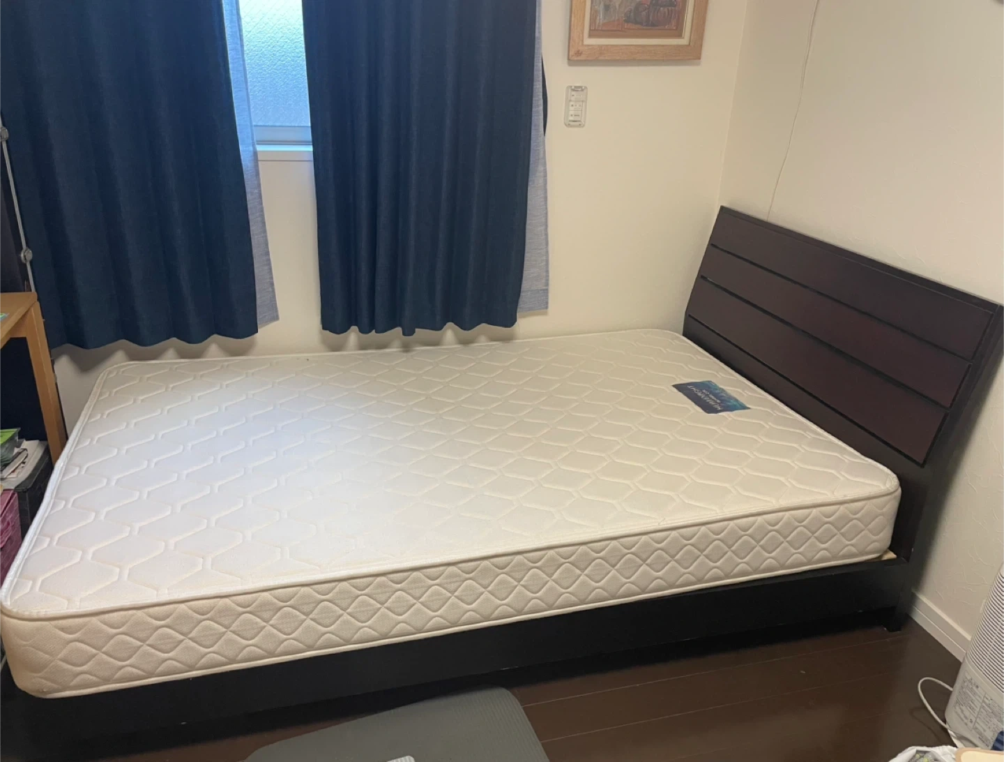 セミダブルベッドフレームと ドリームベッド マットレスのセットです 大きめサイズに買い替えるため出品しました 1人だとゆったり寝られるサイズです 12/18(木)に建物1Fまで下ろすので、玄関先でのお引き渡しが可能です サイズ W120×D203×H40cm(H: 床〜マットレス上面) 【ベッドフレーム】 ・ダークブラウン 【マットレス】 ・ブランド:ドリームベッド ・種類:ボンネルコイル ・日本製 まだまだ使えるものですが 中古品であることをご了承いただける方でお願いします