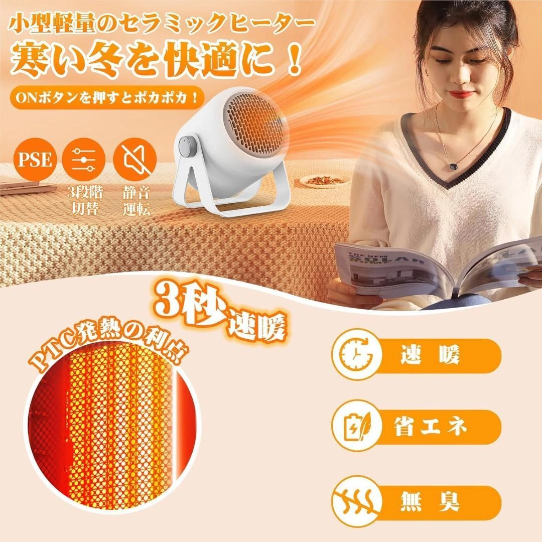 セラミックヒーター 2025新モデル・節電対策・2秒速暖