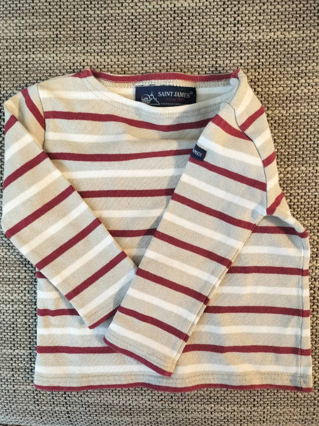セントジェームスの子供用カットソーです。 ・ブランド:セントジェームス ・色:ベージュ、白、赤のボーダー ・サイズ:2ans (2歳) ・うっすらしたシミあり 子供が使用した中古品であることご了承ください。 記名ある場合は、塗りつぶしてお渡しします。 他商品ご購入の方割引いたします!