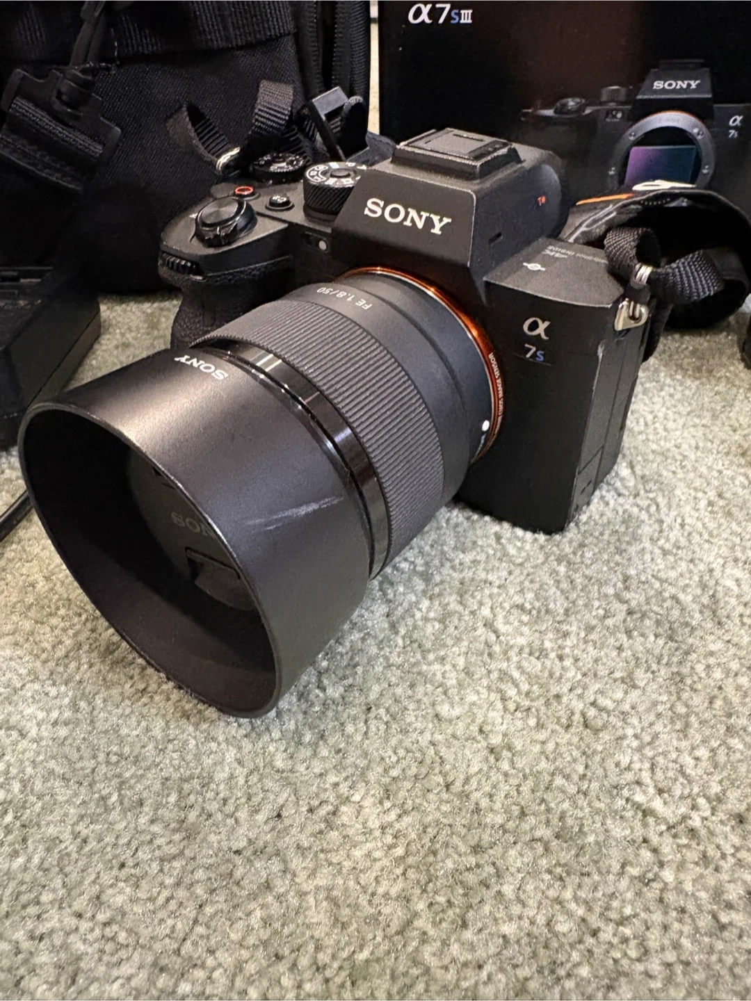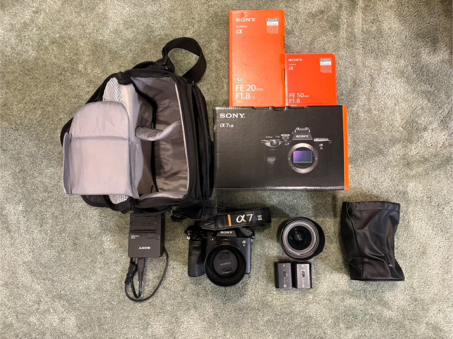 あたたかさソニーのカメラとレンズセットです。 【情報】 ブランド:ソニー モデル:α7S III 【状態】 使用感、小さなキズあり 【付属品】 箱、レンズ(FE 20mm F1.8 G, FE 50mm F1.8)、充電器、バッテリー、カメラバッグ、説明書 中古品であることをご了承ください。