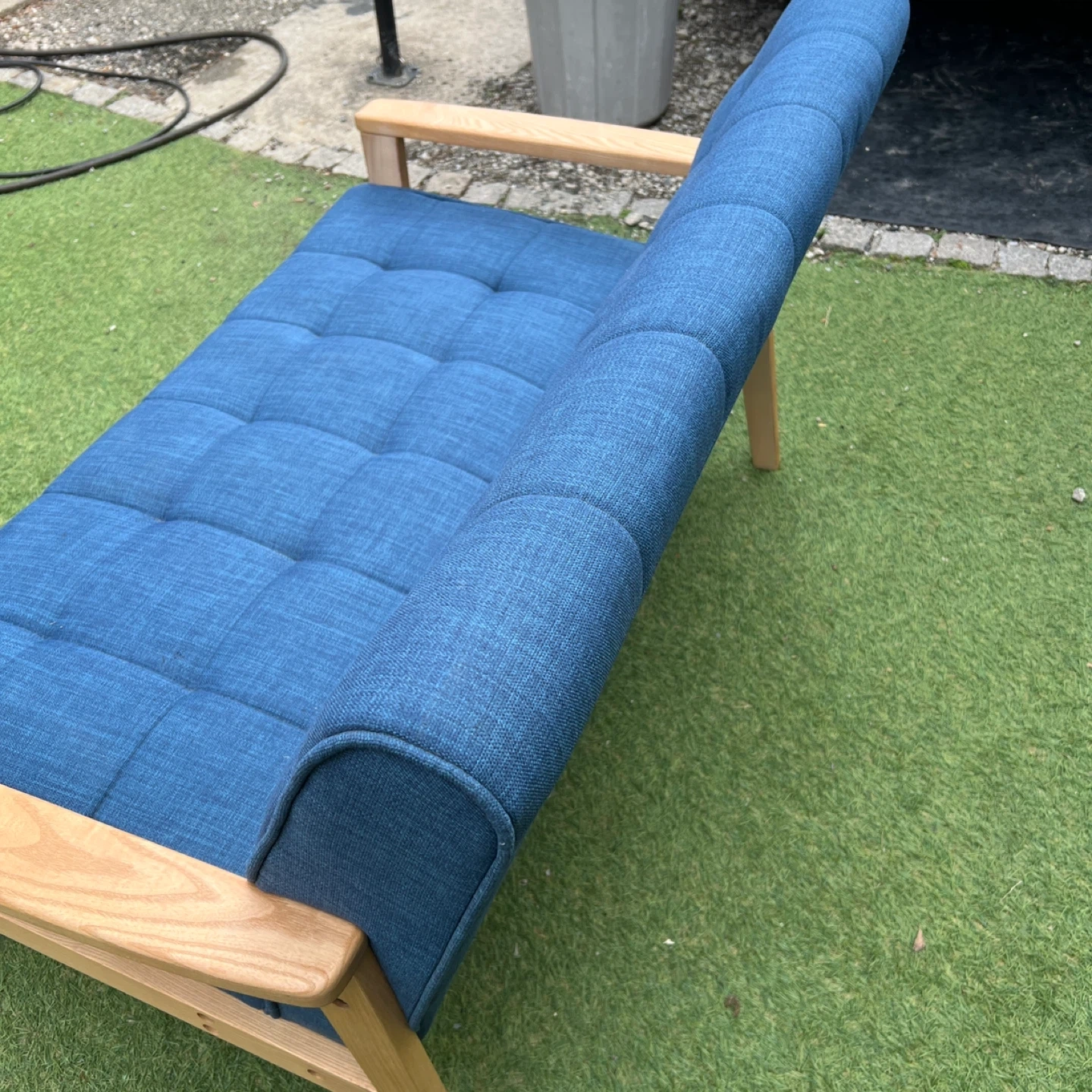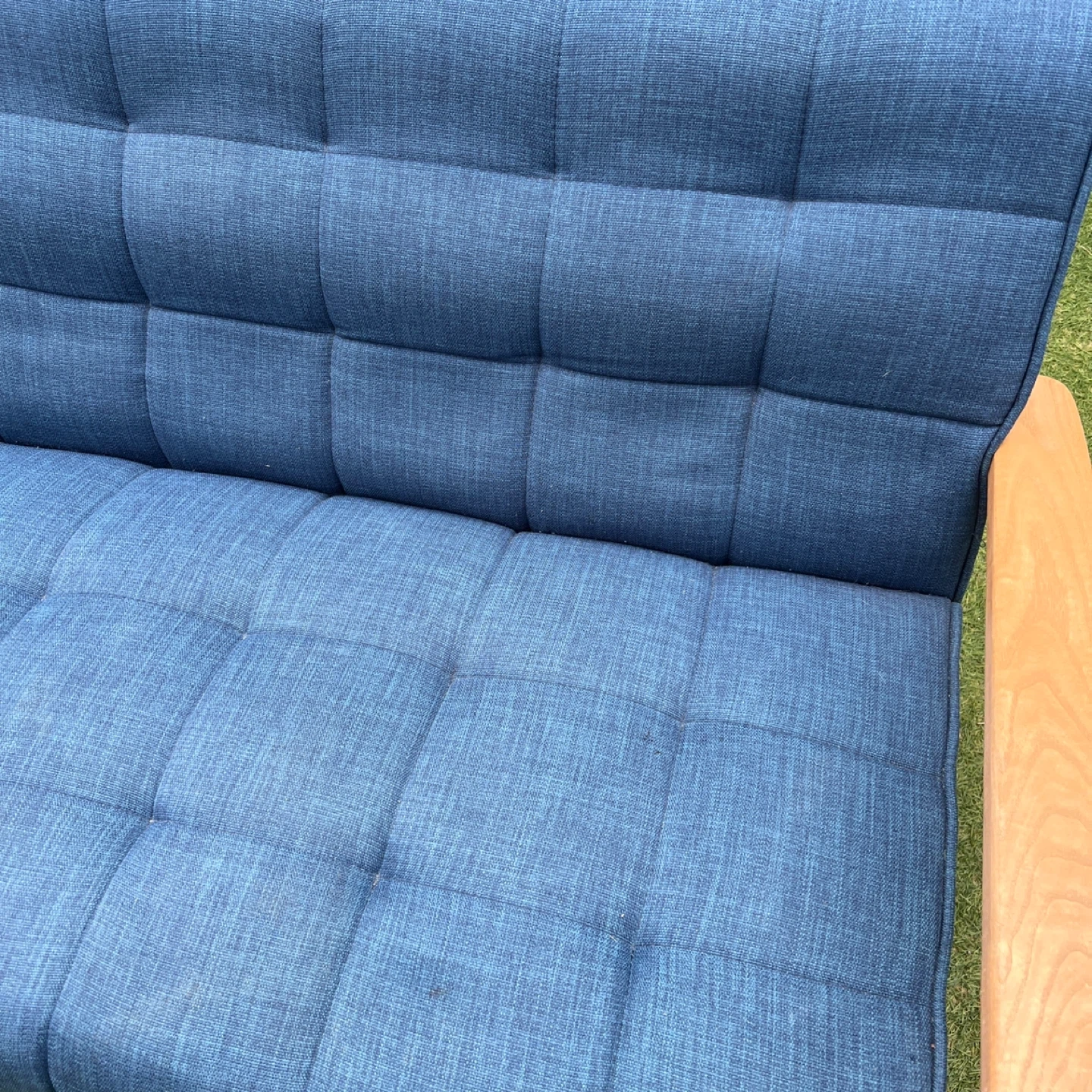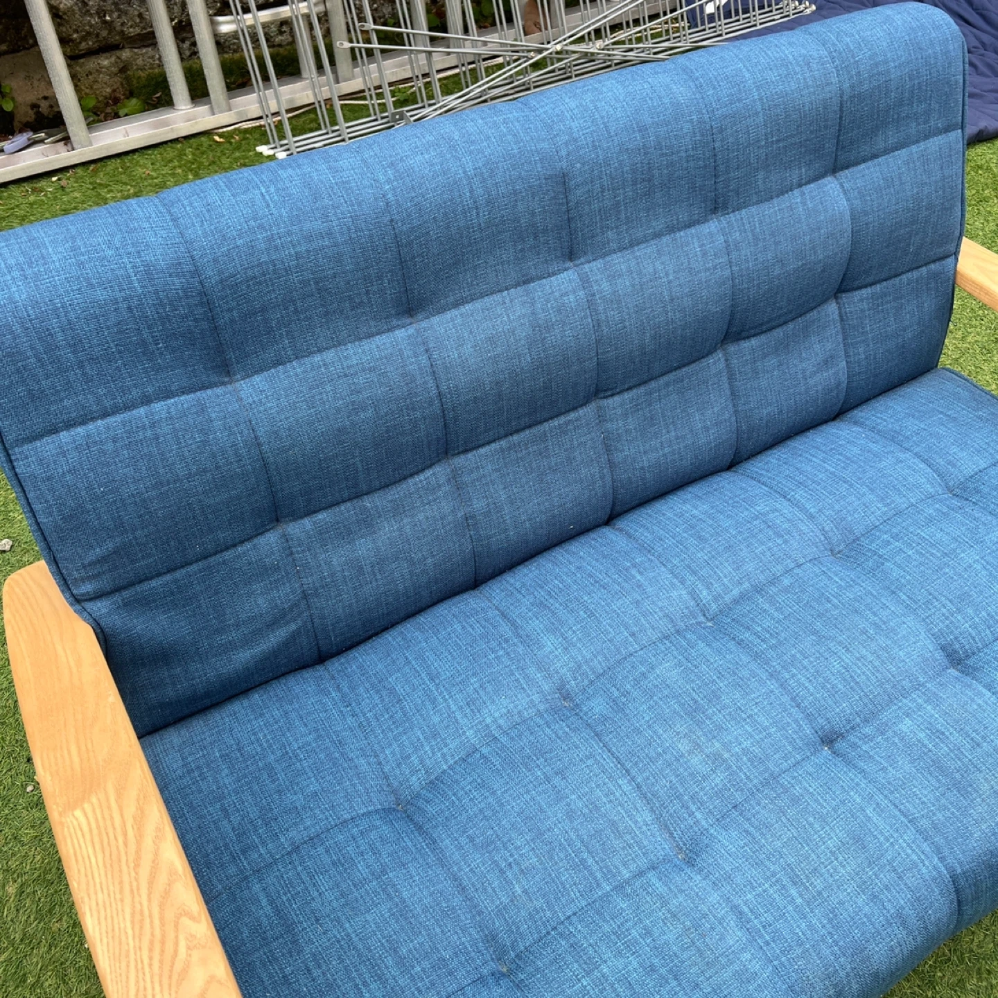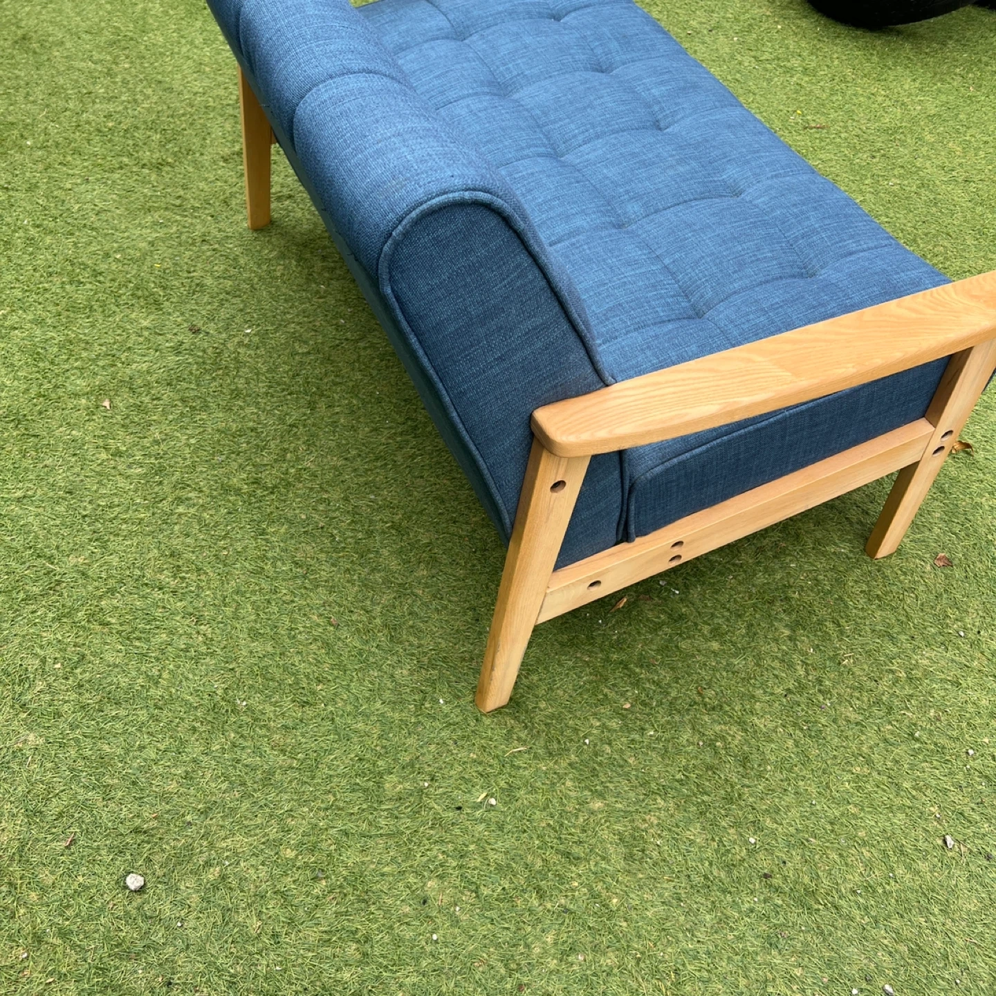 磯子区・南区・港南区・中区くらいであればプラス1,000円で配達可能です! ソファ 2人掛け ウッドフレーム 北欧風 幅125cm ( ソファー ソファ 2人掛け 二人掛け 2Pソファ ) 爽やかなブルーが日々の疲れをいやしてくれる、くつろぎのリビングにぴったりの2人掛けソファです。注目はトレンドの西海岸インテリアにぴったりの、デニム風生地を使ったマリンブルー。北欧テイスト溢れる鮮やかなデニムブルーもおススメです。ぬくもりのある天然木を使用したナチュラルフレームは、1点1点に木目が違う味のある仕上がりです。多重構造によるしっかりした座り心地で、心と体を優しく包み込むリラックス空間を演出してくれます。 【商品詳細】 サイズ/約幅125×奥行78×高さ76cm 座面高さ 約46cm 内容量/1台 材質/張地:布(綿、ポリエステル) クッション材:ウレタンフォーム、チップウレタン 主要部材:天然木、ウェービングベルト、Sバネ フレーム:天然木、塗装 生産国/中国製 型番/IW-79 使用に伴う、傷や汚れはあるかと思いますが、まだまだ使用可能です。 写真にてご確認くださいませ。 中古品をご理解の上ご検討下さいませ!