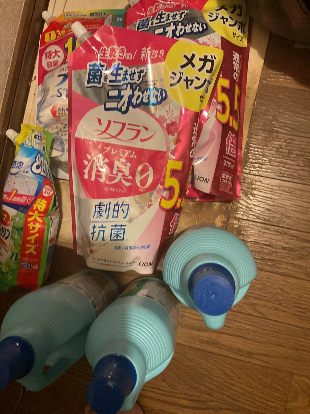ソフラン、洗濯洗剤、ハイター等です ・種類:柔軟剤 ・ブランド:ソフラン ・サイズ:メガジャンボ 5.5L ・状態:未使用、一部使っています。 中古品であることご了承ください