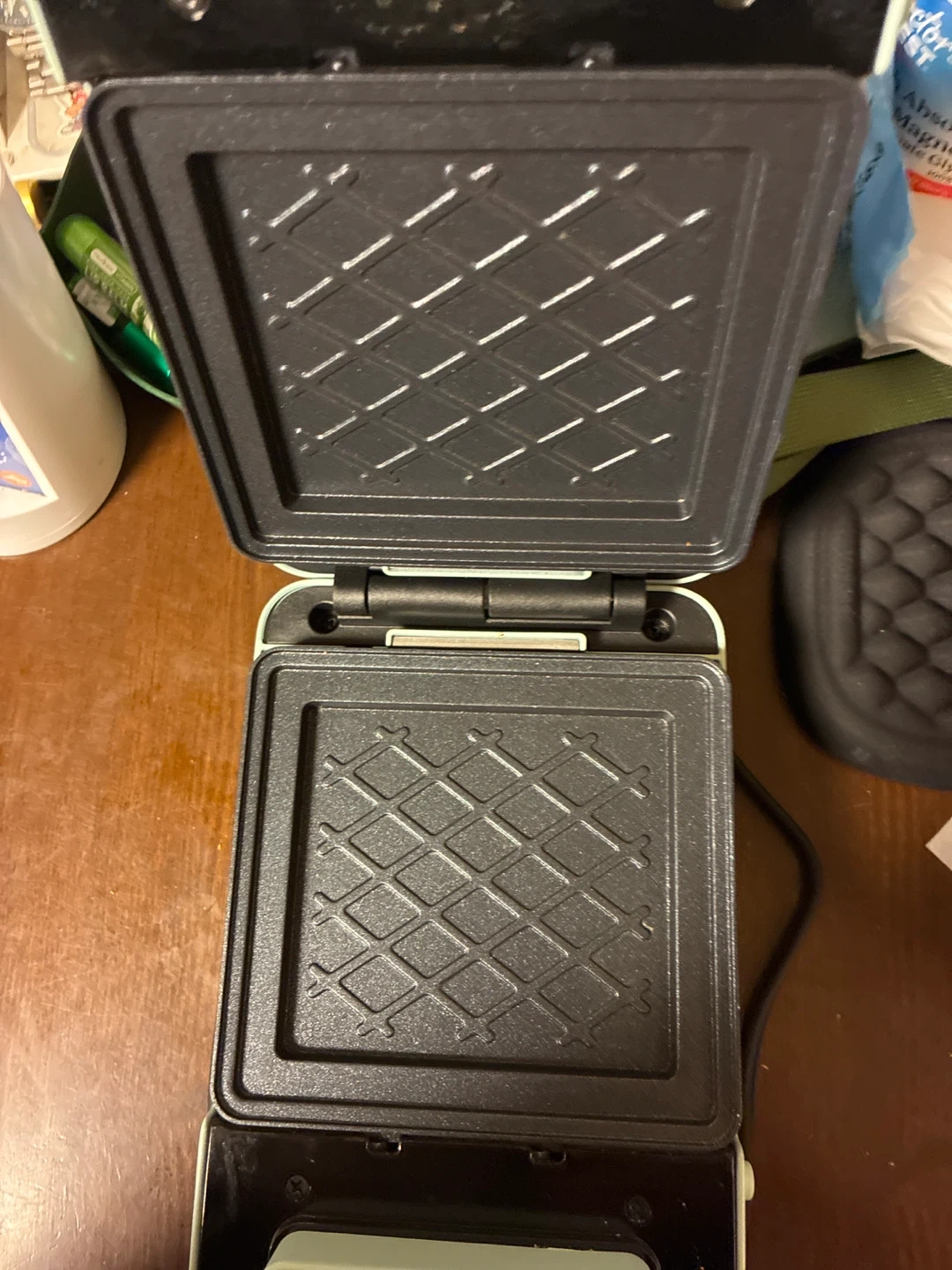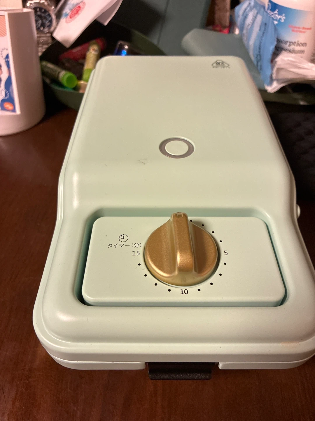 ソレムードのホットサンドメーカーです。 ラーメンメイカー一人ぴったりです。消毒しました。 ・ブランド:ソレムード ・色:ミントグリーン ・タイマー付き ・使用感あり 中古品であることをご了承ください。