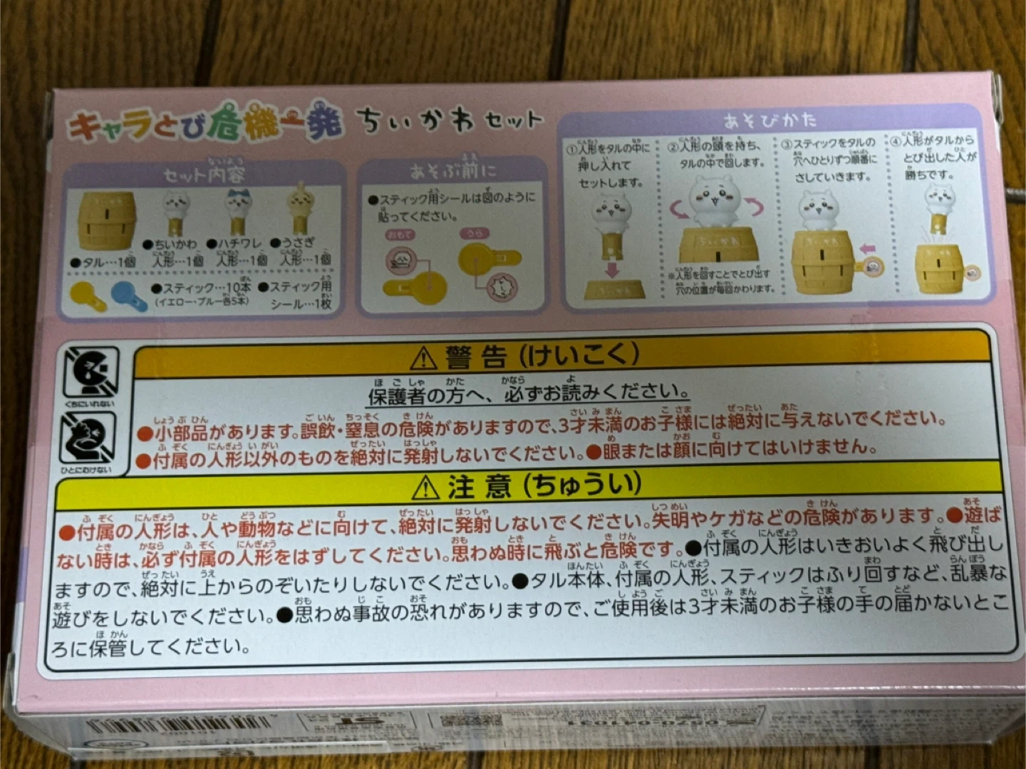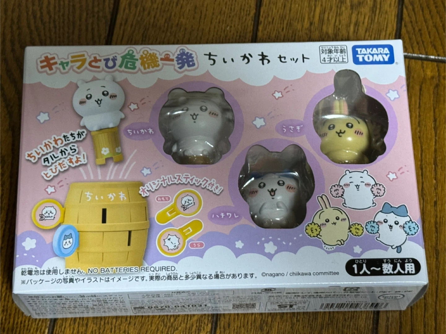 タカラトミーのちいかわ キャラとび危機一発です。 ・対象年齢:4歳以上 ・付属品:タル1個、人形5個、スティック12本、シール1枚 ・新品未使用品 中古品であることをご了承ください。