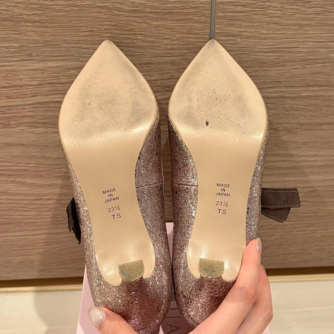 試し履きをしましたが足の形に合わないため出品致します。着用は10分ほどです。 新宿ルミネエストで購入したものになります。 お値下げ交渉○です ★ロゴリボンのストラップがキャッチーなメリージェーンパンプス。ロゴリボンには【Sweet Love】という文字を入れてロマンティ ックな仕上がりに♪今シーズンも引き続きすっきりとしたロングノーズのつま先に注目です。ポインテッドのシャープなつま先が甘めのリボンモチーフを大人っぽく演出してくれます。ヒールは6㎝のピンヒールですが、ストラップ付きのため安定感のある履き心地になっています。 ★ストラップの下にはゴムがついており、ストラップを外すことなくそのまま脱ぎ履きしていただけます。踵部分は抜けを防止するために、履き始めはある程度ホールド感があるお作りです。 色・素材:ライトピンクグリッター/グレージュグログラン ヒール高:6.0cm台 サイズ展開:21.5 ~ 25.0cm 原産国:日本製 結婚式 きれいめ パンプス お呼ばれ キラキラ 画像ご確認ください。 カラー···ピンク ヒール高さ···5.1〜7cm つま先···ポインテッドトゥ ソールヒール形···ピンヒール ご希望の方はお気軽にご連絡ください。