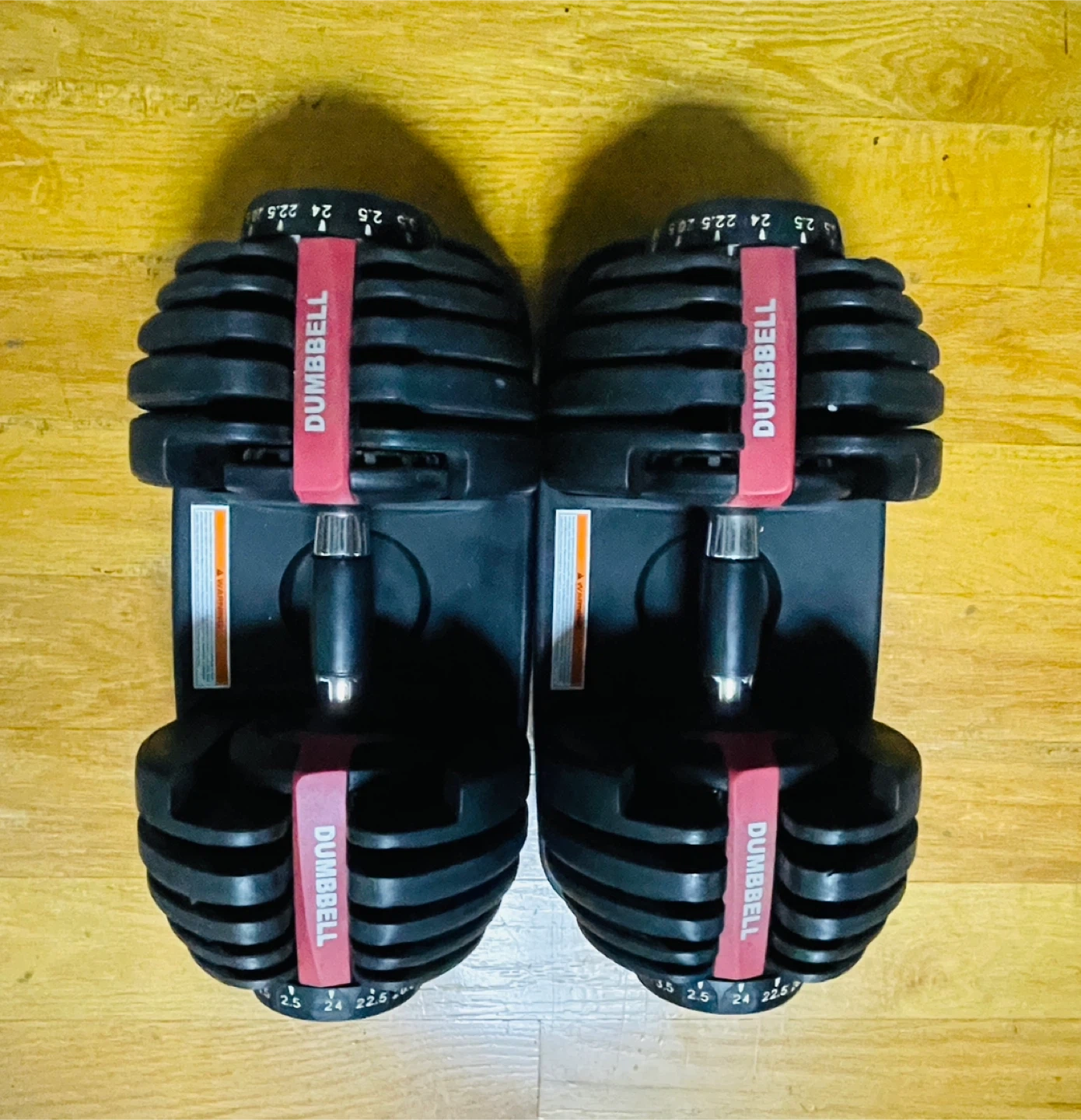 表記価格は、ダンベル2個料金です。 1個のみの購入は不可。 調整可能なダンベルで、片手2.5kgから24kgまでの重量に対応(両手最大48kgのトレーニングが可能)。 調整可能ダイヤル式ダンベル 重量範囲: 2.5kg〜24kgまでの15段階 2.5/3.5/4.5/5.5/6.5/8/9/10/11.5/13.5/16/18/20.5/22.5/24kg Wild FIT製 専用ダンベルトレイ付き 長期使用中ですが、大きな問題はありません。 トレーニング効率を大幅にアップすることができます。 北区中十条まで来て頂ける方のみと取引させていただきます。値引き交渉および梱包は致しません。 埼京線十条駅および京浜東北線東十条駅が最寄り駅ですが、駅でのお取り引きには応じません。指定場所でのお取り引きとなります。 以上、よろしくお願い致します。