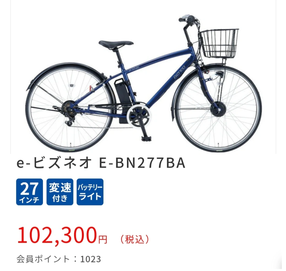 ダイワサイクルの電動自転車です! 使用に伴う傷や汚れはありますが、動作に支障は無く、中古の自転車としては比較的綺麗かと思います。 出品にあたり、防犯登録の抹消、消耗品の点検、変速、ブレーキの調整をおこなっております。 バッテリーの劣化等は感じず、今後も長くお使い頂けるかと存じます。 充電器、スペアキー3本、自転車販売証明書をお付けいたします。 東京都、飯田橋駅近くの建物にて引き取りをお願いいたします。非対面でのお渡しも可能です。 非対面の場合、24時間いつでもお渡し可能です。 また、東京近郊であれば別途交通費をいただければ配送も行います。 日時が会わない場合、駐輪場等の場所を指定していただければ置き配にも対応いたします。 その他地域への発送はご相談ください! ご不明な点がございましたらお気軽ご相談ください。 ーーーーーーーーーーーーーーーーーーーーーーー DAIWACYCLEの通勤通学に便利な機能も備わったロングセラーモデル、 『BIZxNEO(ビズネオ)』に電動アシスト自転車が登場 ■バッテリー容量:8.5Ah ■充電時間:6.0時間 ■タイヤサイズ:27インチ ■適応身長(目安):160cm以上 ■車両重量:24.0kg ■変速:外装7段変速 ■走行距離:29-43km ※実寸のため多少の誤差はご容赦下さい ● 内臓センサーとフロントモーターによる快適アシスト走行 ● 安全安心BAA適合車 ● スポーティなフロントバスケットが標準装備 【e-BIZNEO/27型/E-BN277BA/DAIWACYCLE/電動自転車】 電動自転車 クロスバイク e-bike