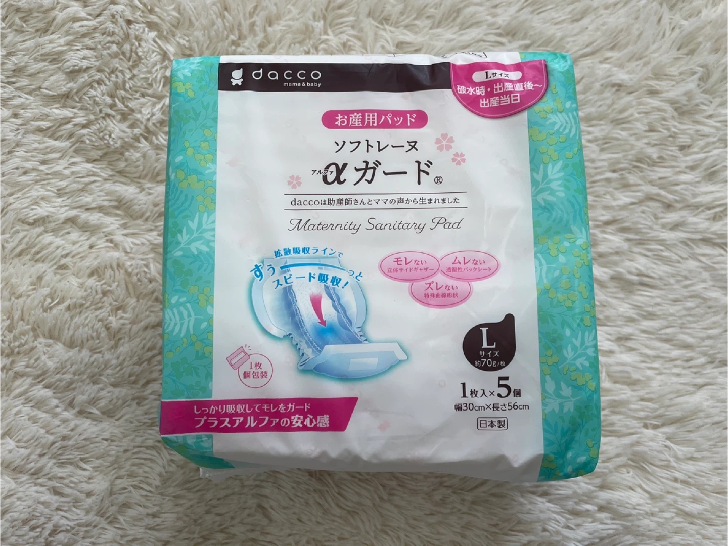 ダッコのお産用パッドです 【情報】 ブランド:ダッコ 商品名:ソフトレーヌαガード サイズ:Lサイズ(幅30cm×長さ56cm) 内容量:1枚入×5個 【状態】 新品未開封 中古品であることご了承ください