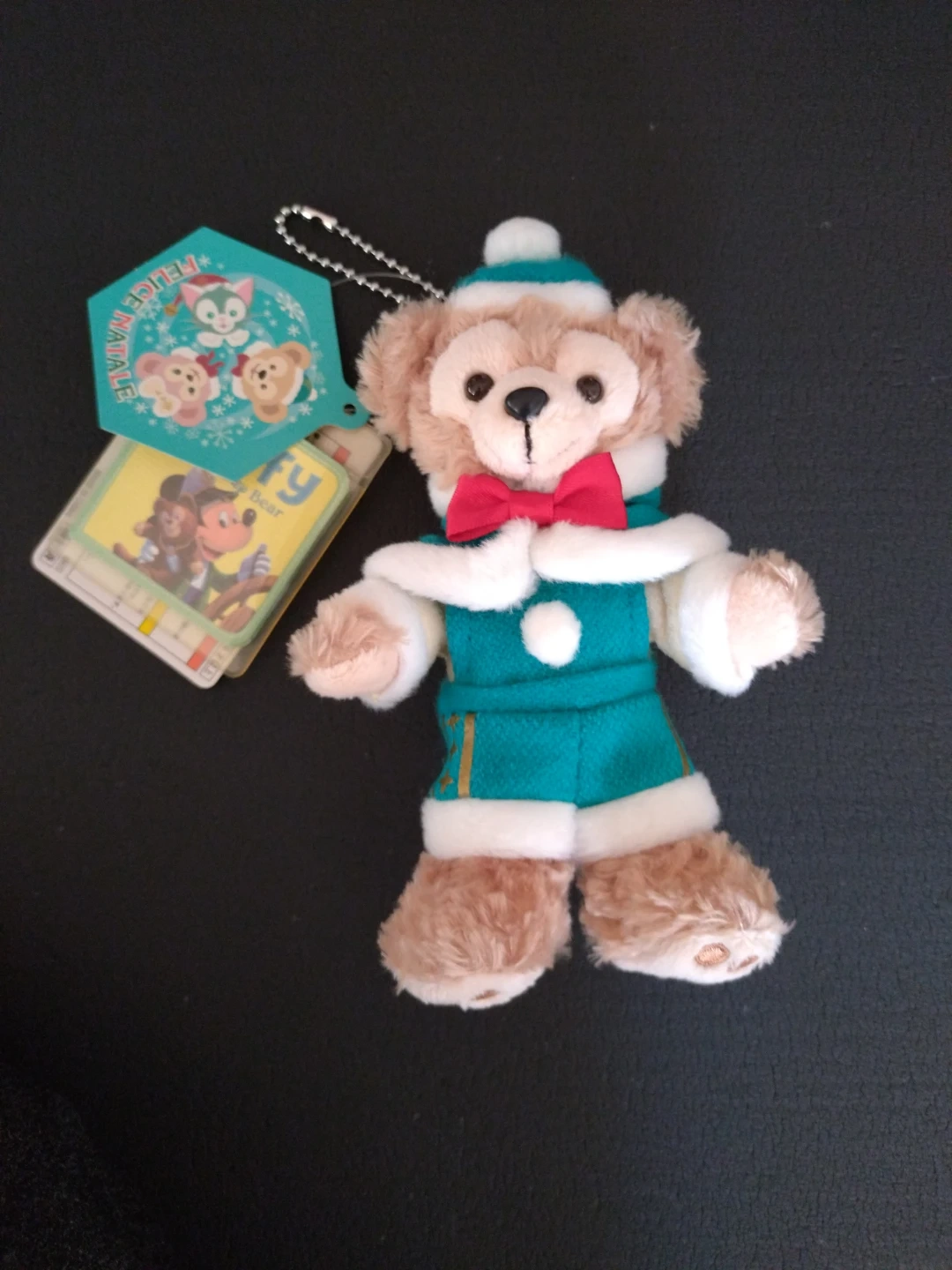 ダッフィーのぬいぐるみです。 ・緑色の衣装を着ています ・赤い蝶ネクタイ ・キーチェーン付き ご不明点があればお気軽にお尋ねください。